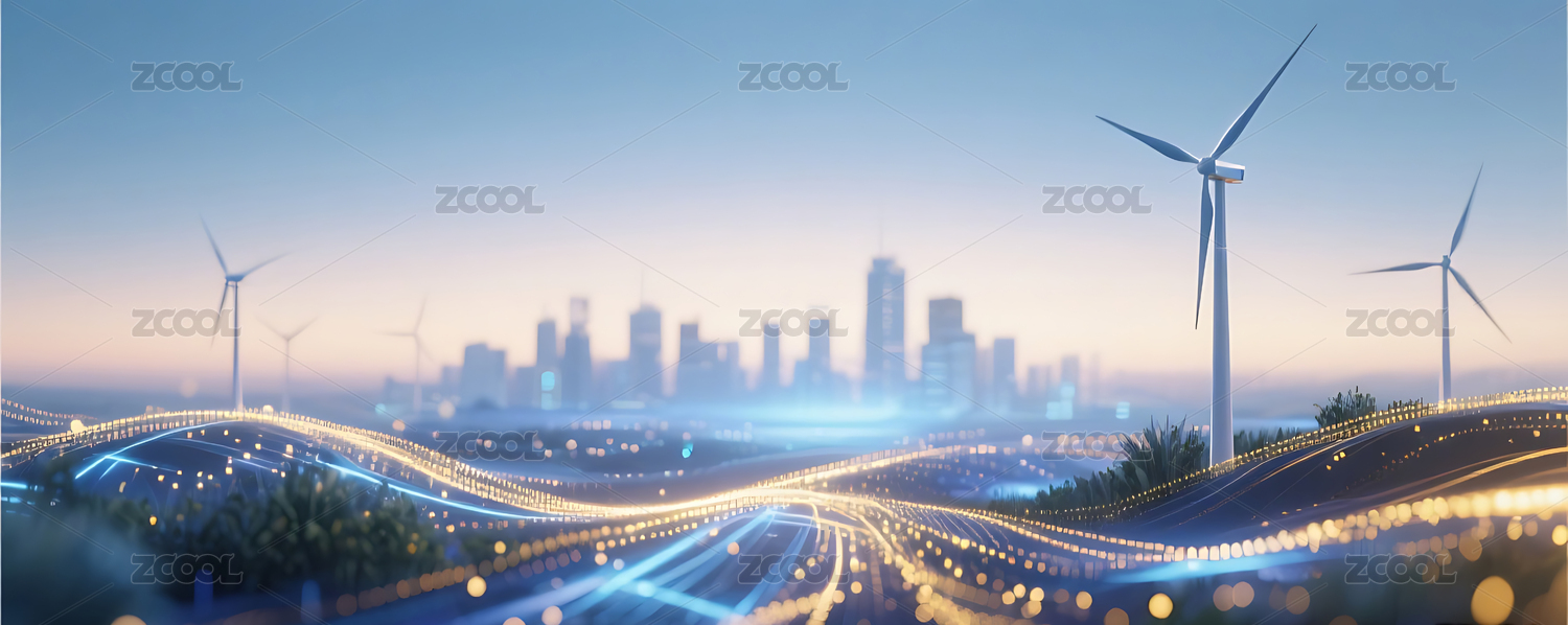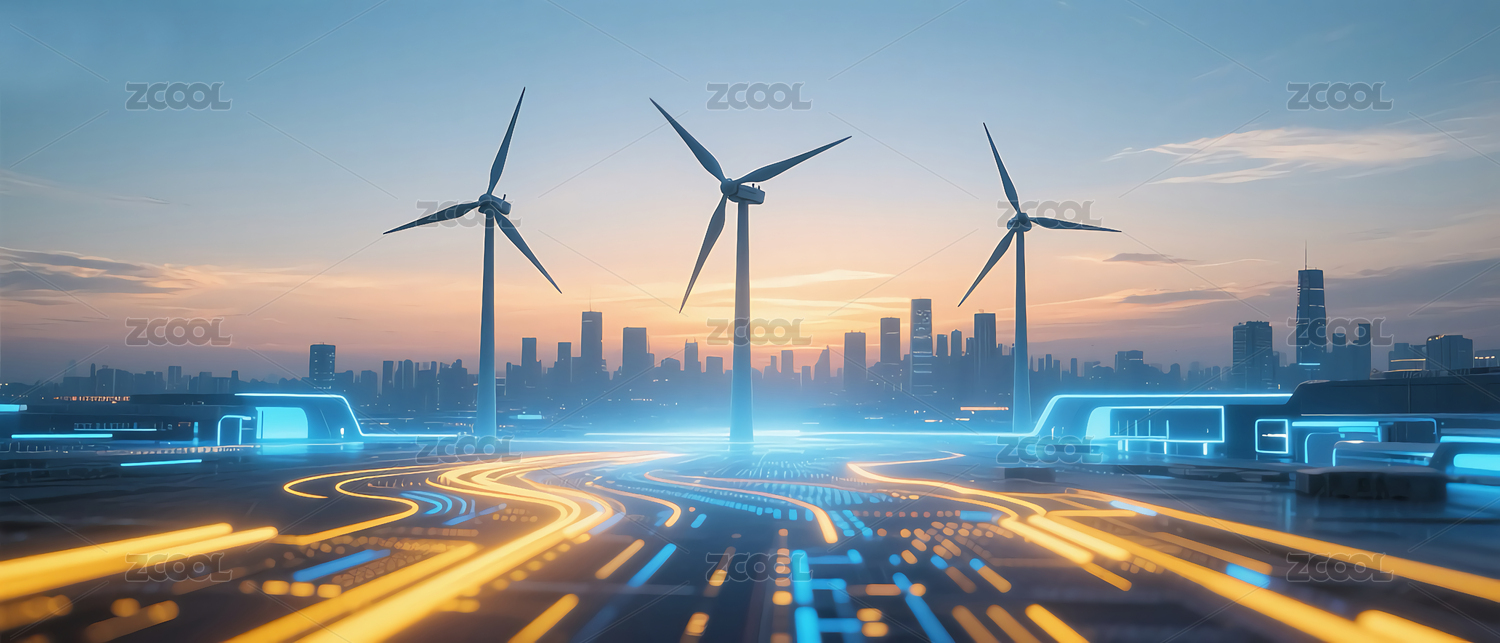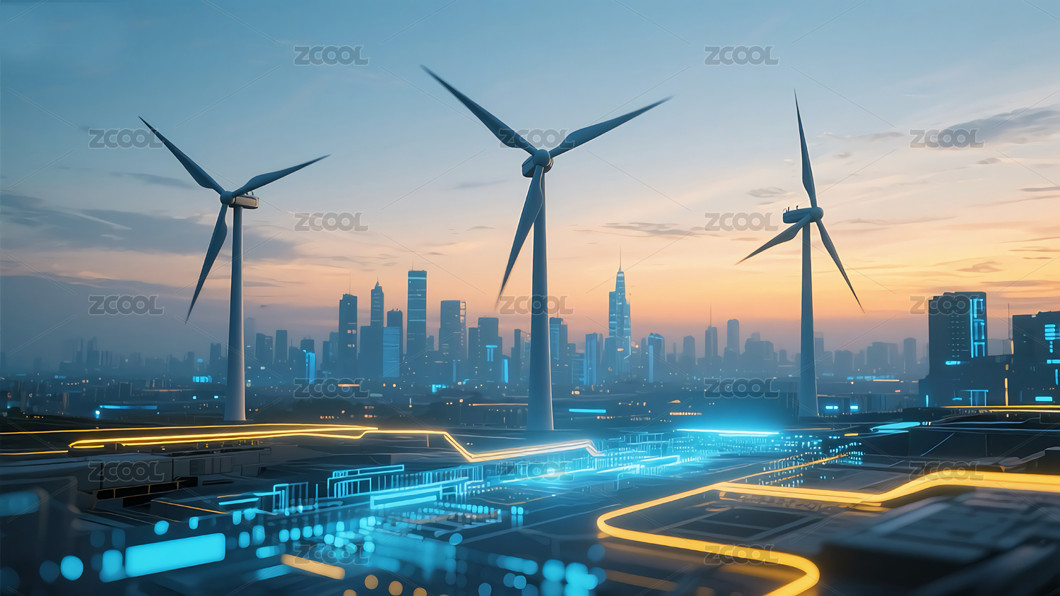 卡通,3D,元素,风车,背景,蓝色,涡轮机,环保,新能源,城市