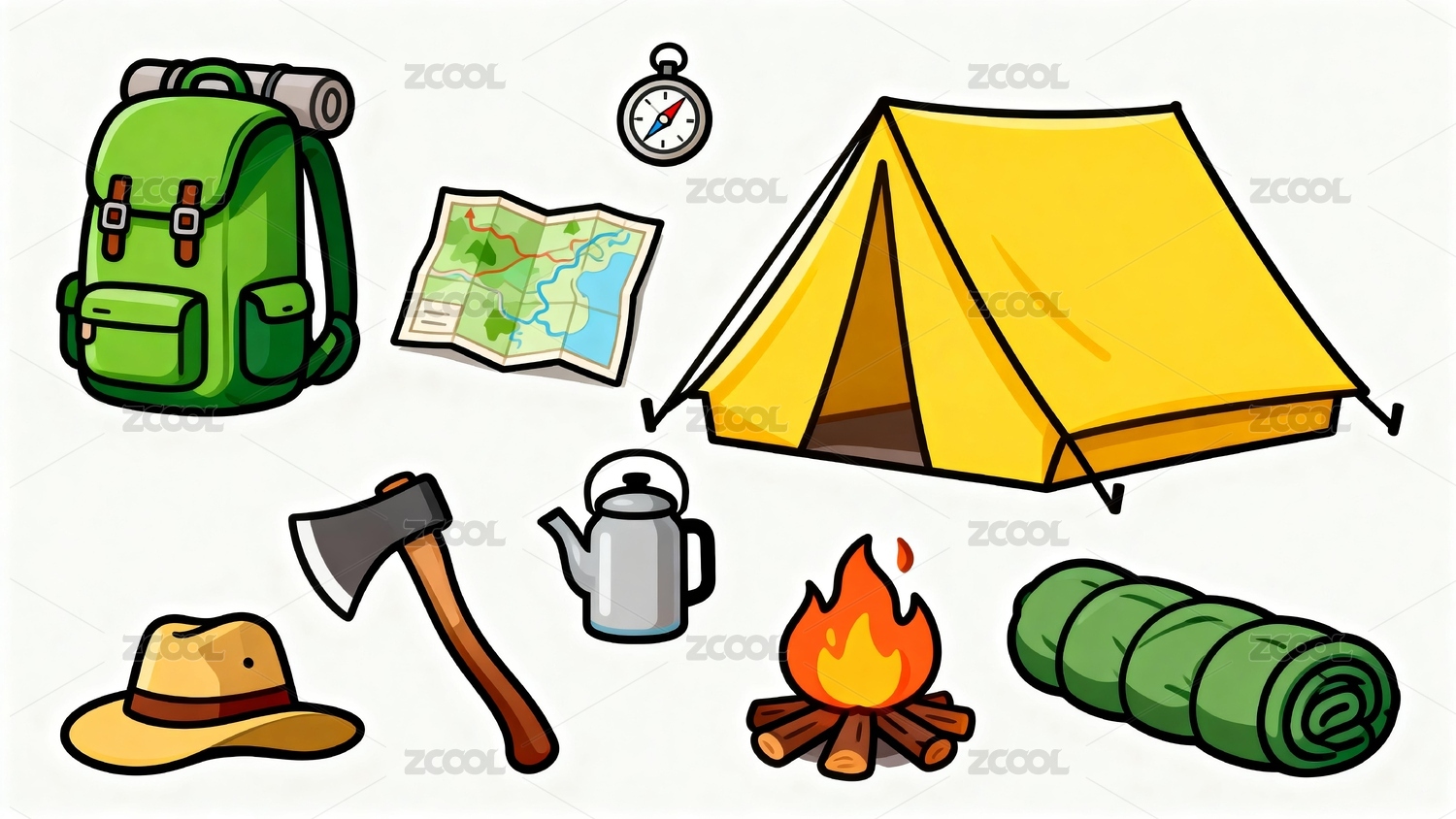 露营卡通插画元素