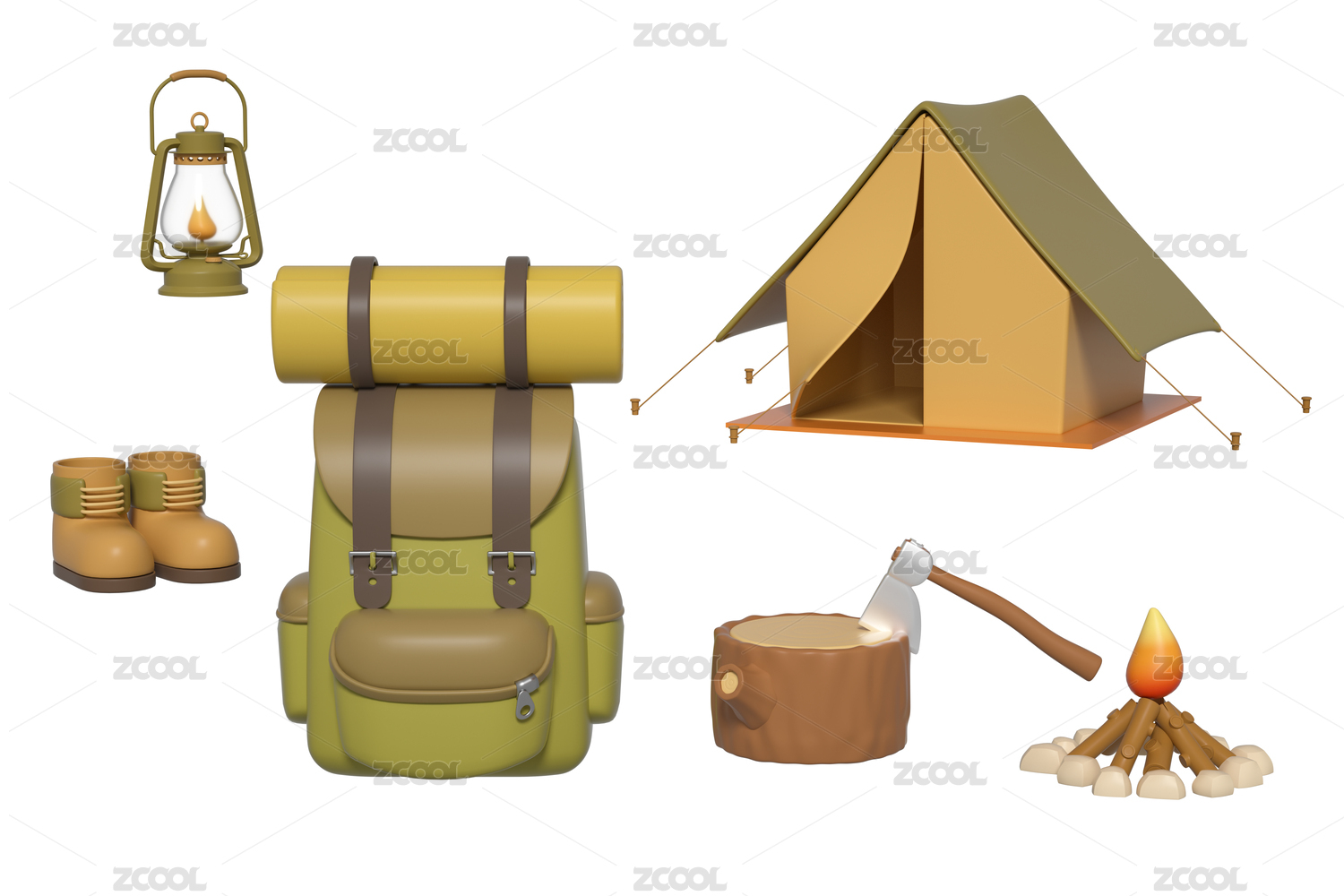 3D渲染的帐篷露营元素