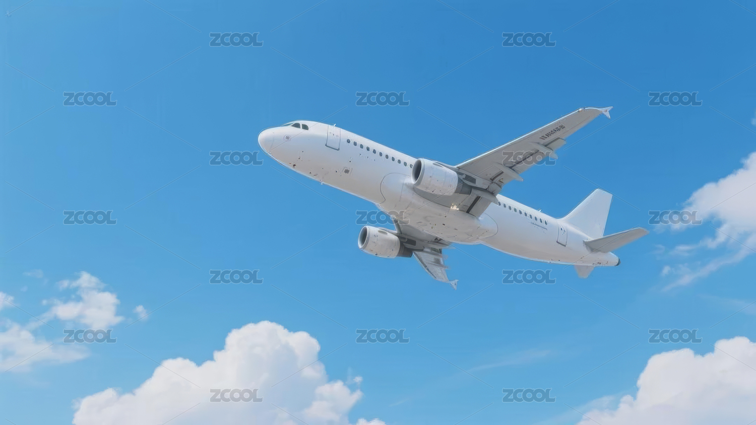 亚洲夏季商用客机飞行在美丽晴朗的天空