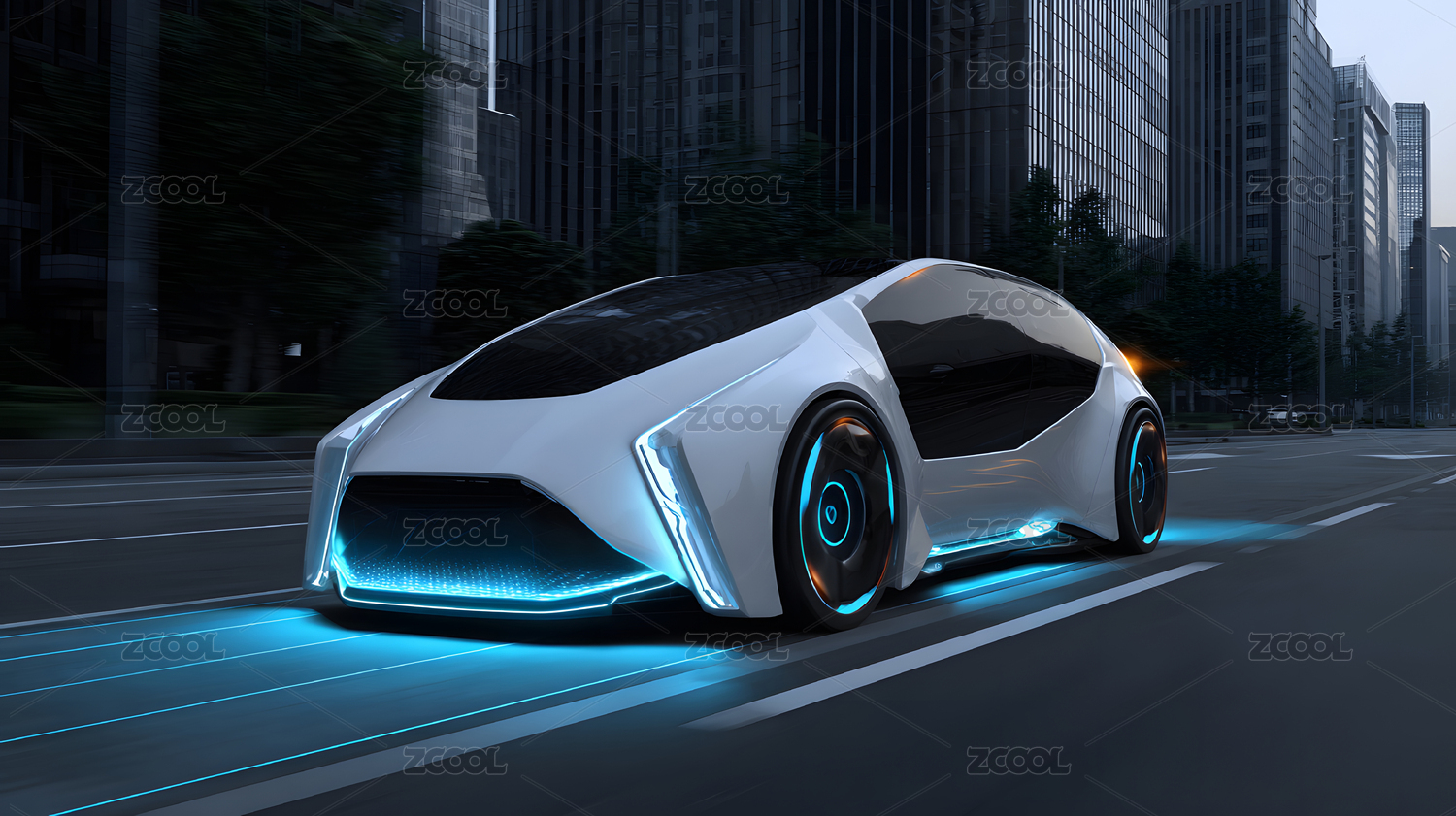 未来科技汽车自动驾驶新能源商务概念插图