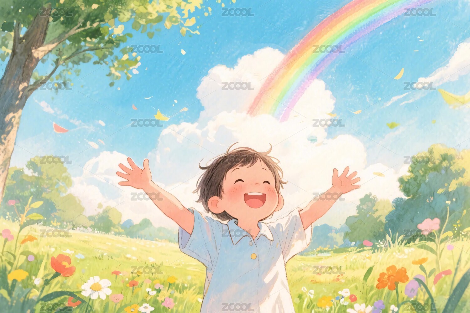 小女孩,向日葵,插画,卡通,儿童,阳光,蓝天,草地,花朵,温馨