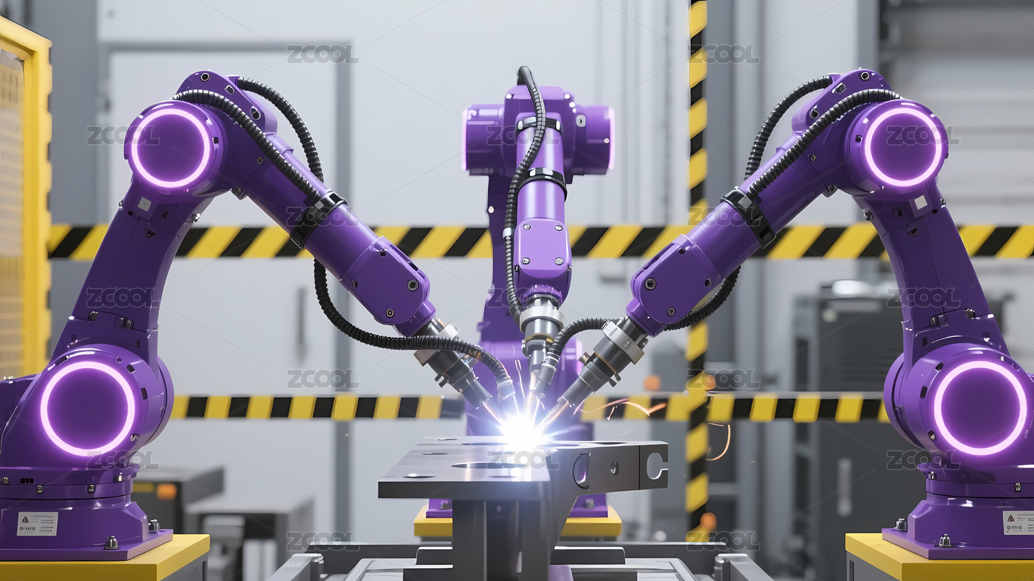 灰色,紫色,条纹,机械臂,焊接,作业,车间,地面,警示