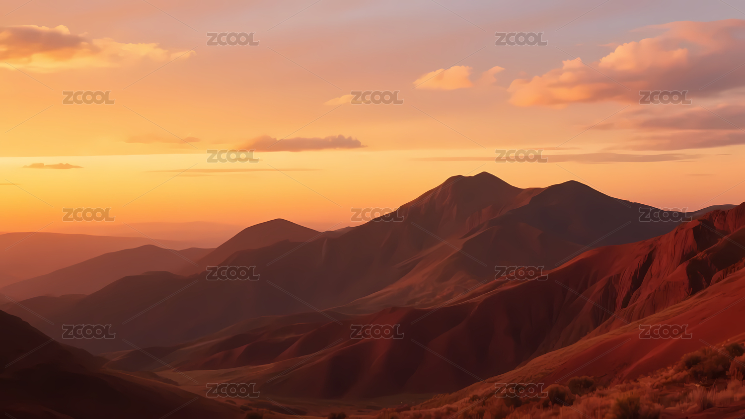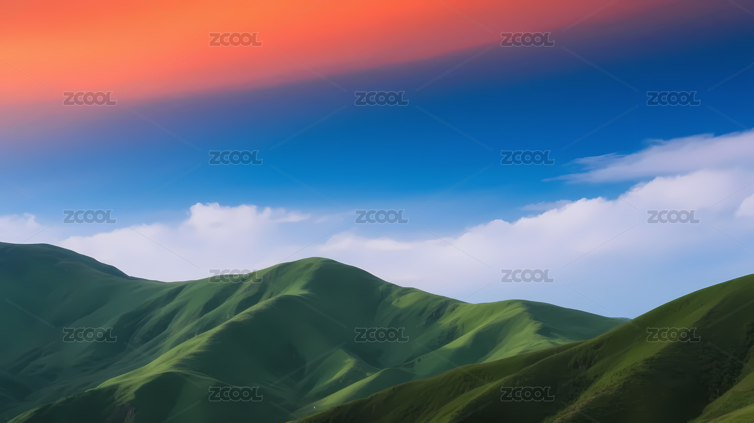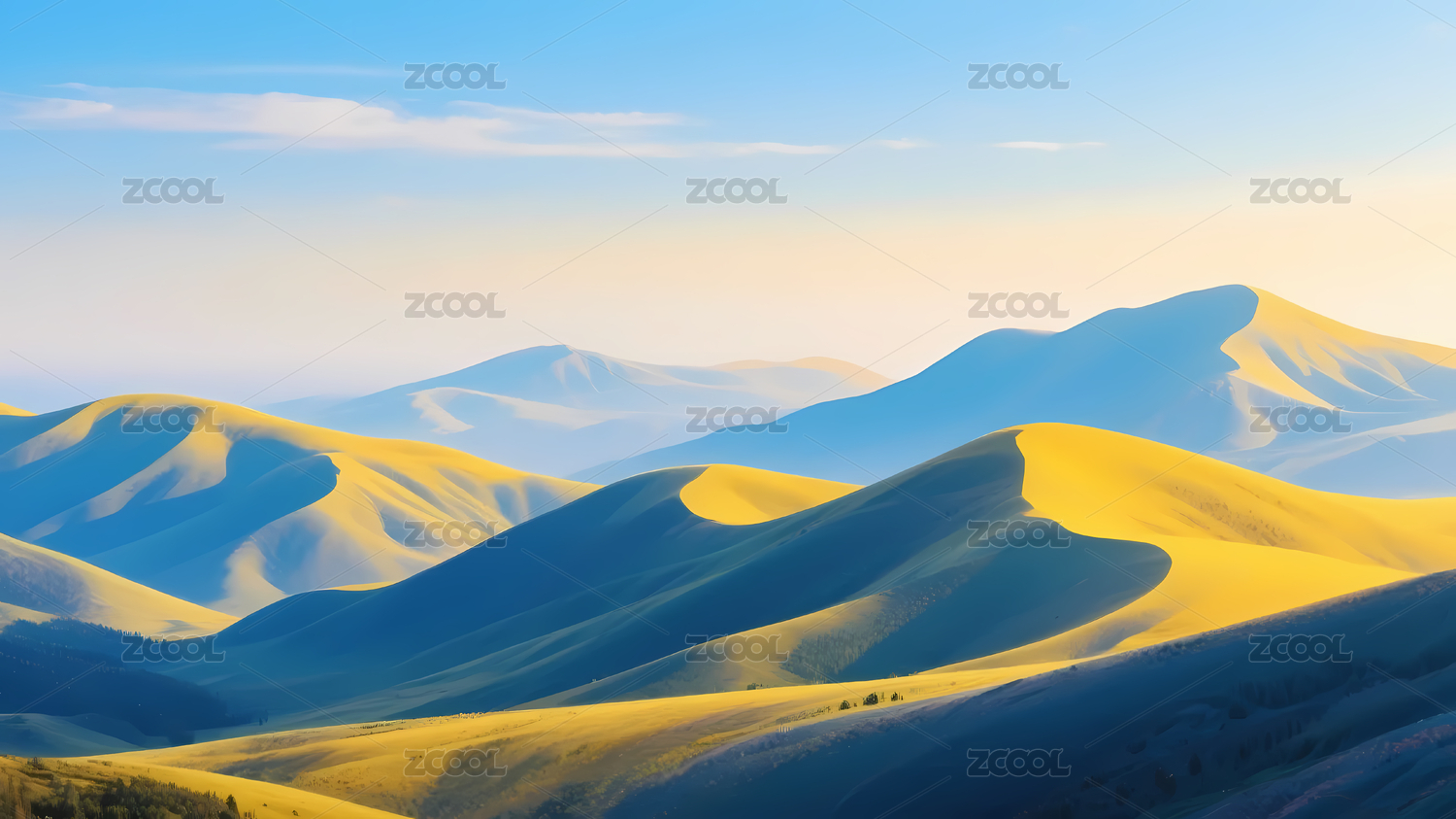 绿色,黄色,山脉,蓝天,起伏,层次,鲜艳,宁静,壮丽