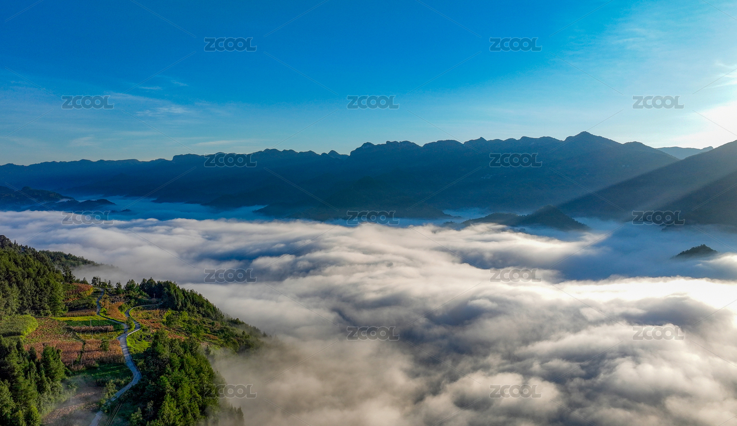 亚洲,中国,重庆,酉阳,晨雾,朝晖,日出,山峦,云海,光影