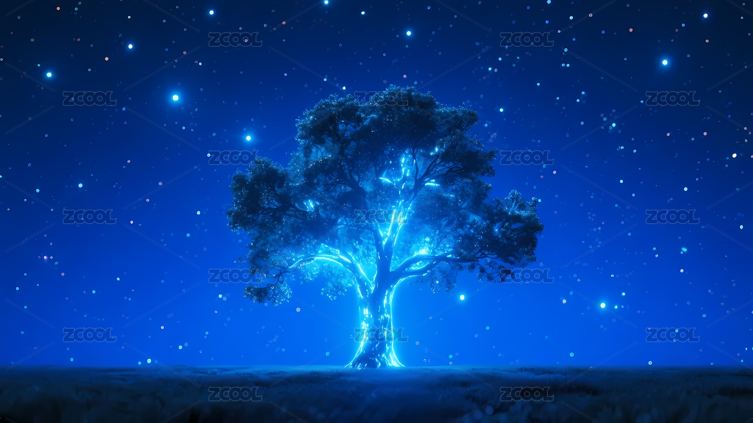 白色,蓝色,发光,宁静,树,山脉,夜空,深蓝色,神秘