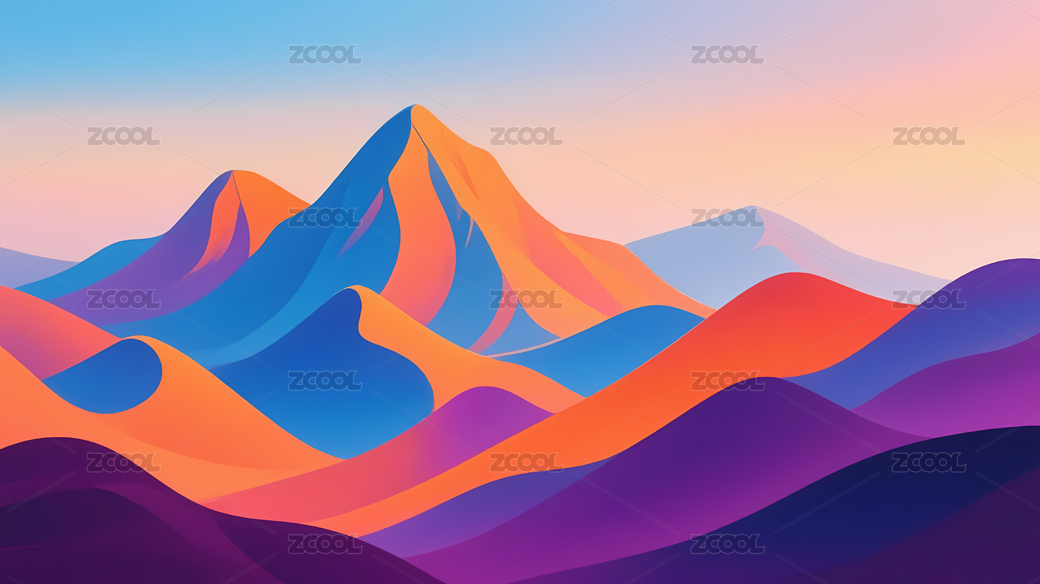 蓝色,天空,橙色,红色,紫色,山峰,夕阳,自然,景观