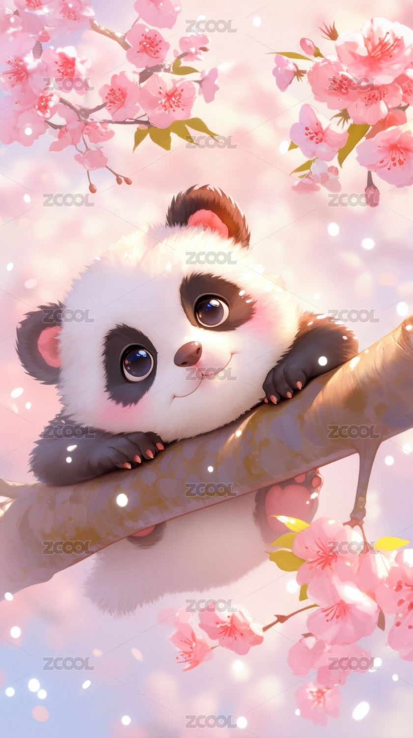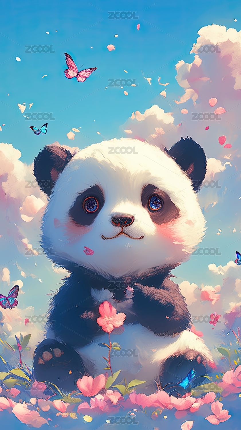 艺术,背景,户外,自然,插画,梦幻,花朵,动物,熊猫,卡通