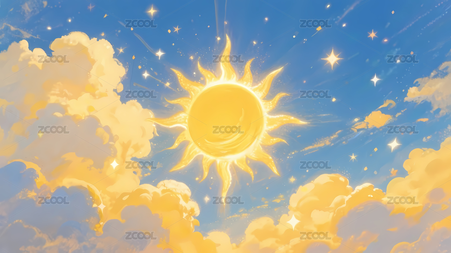 主体,太阳,黄色,蓝天,白云,星星,明亮,天空,夜空
