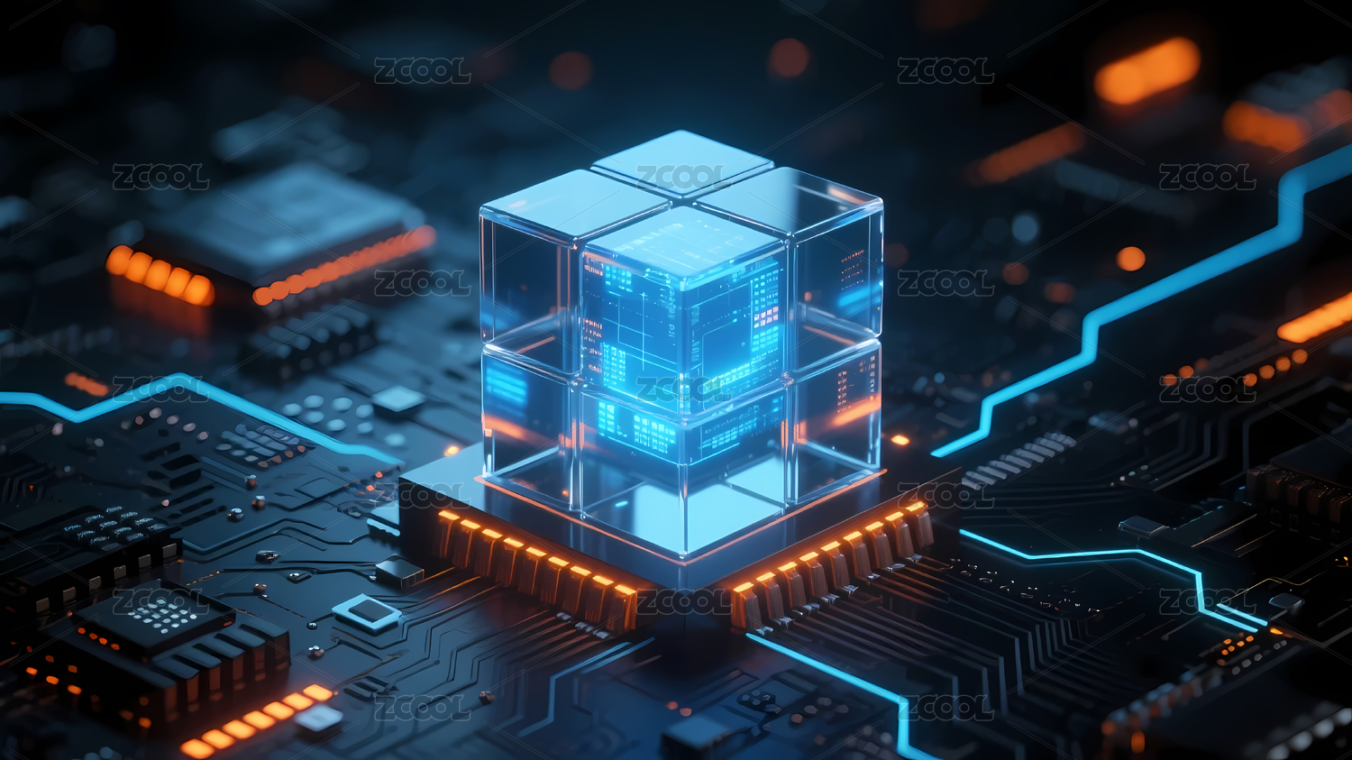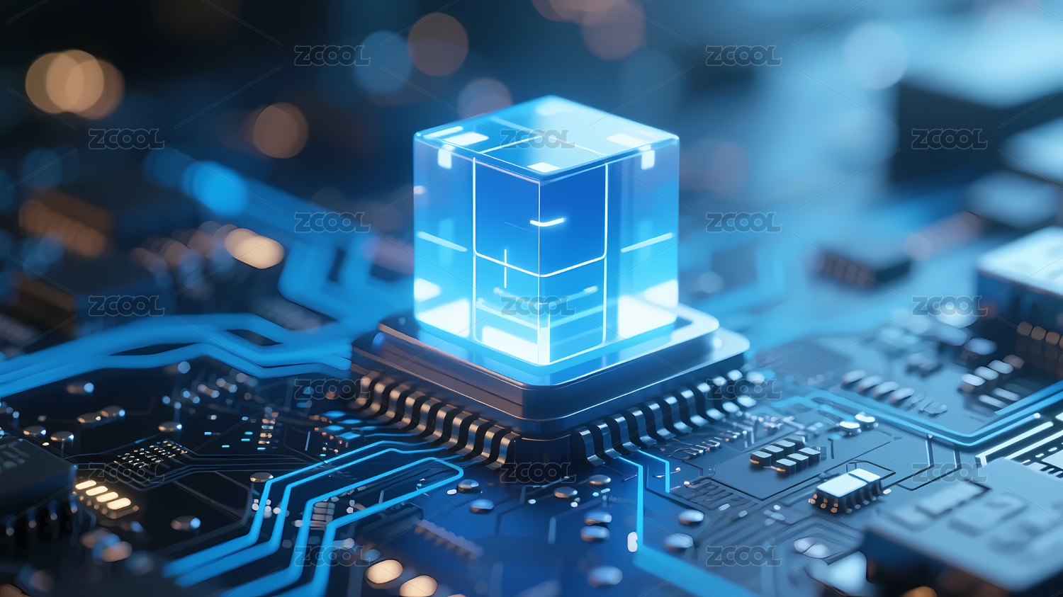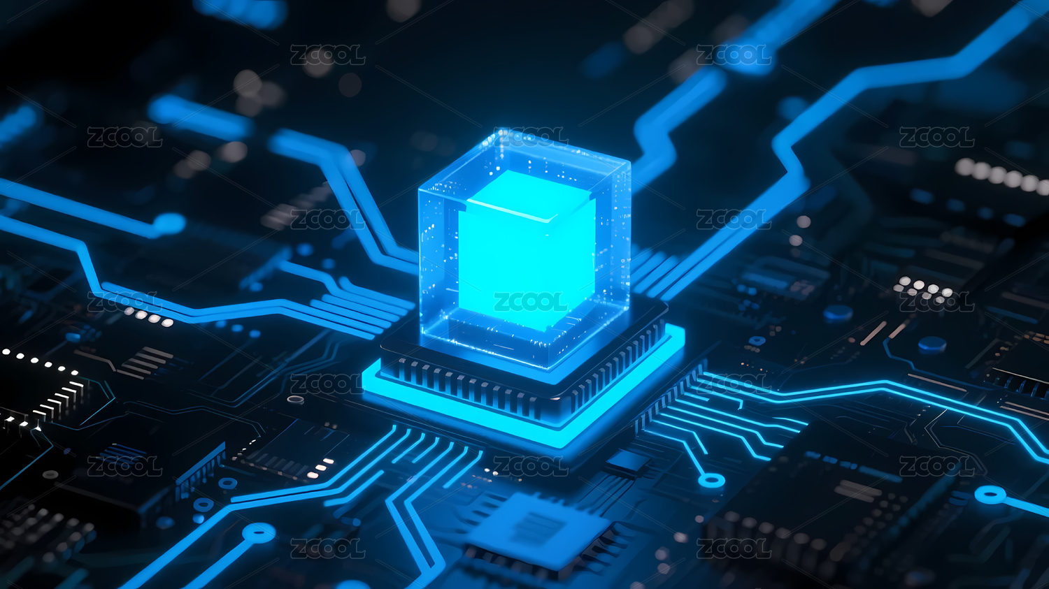 蓝色立方体芯片绿色光效