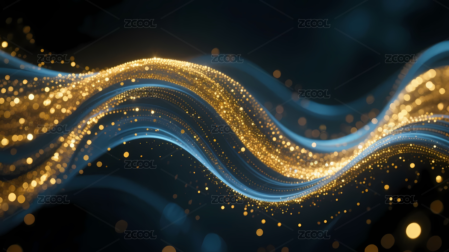 波浪,线条,深蓝,流动,主体,金色,科技,青绿色,光点