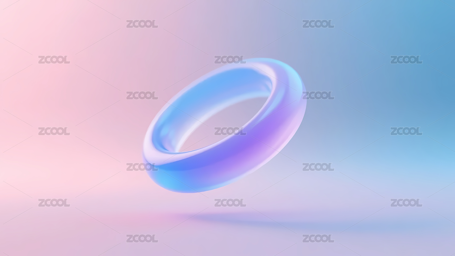 彩色透明荧光色缠绕晶体圆环3D赛博插画