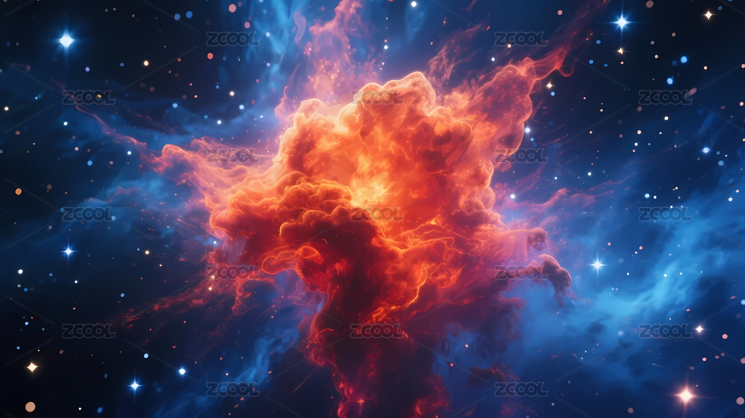 红色,蓝色,交织,星空,星星,星云,宇宙,深邃,闪烁