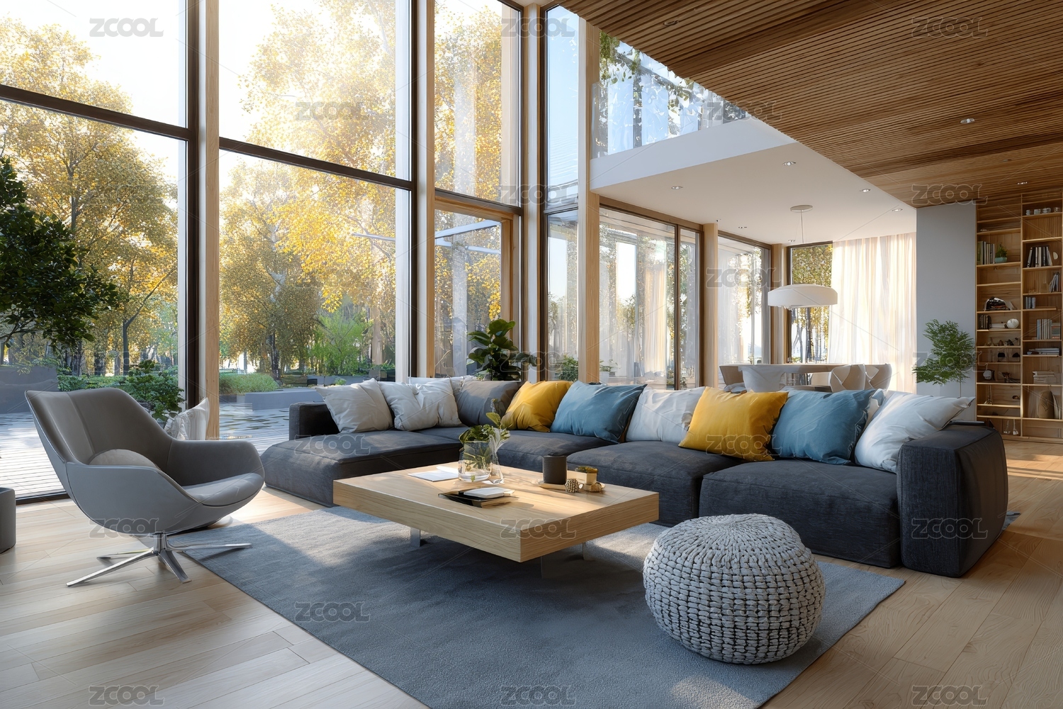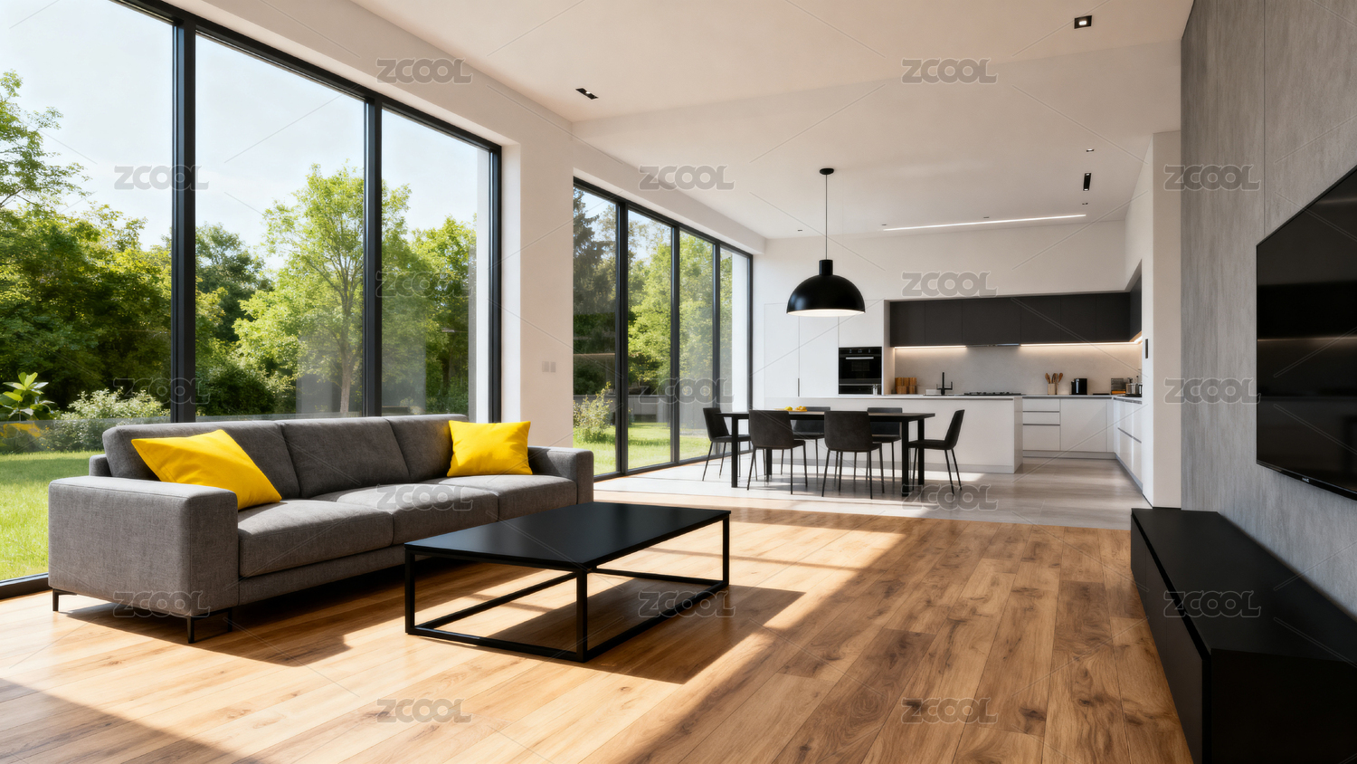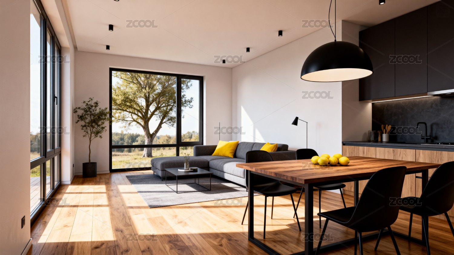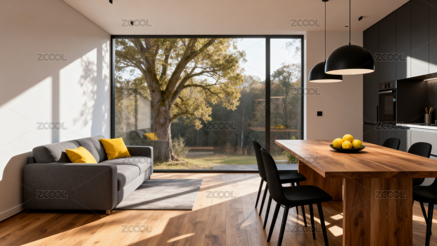 阳光,椅子,窗户,绿植,桌子,沙发,室内,茶几,吊灯,简约