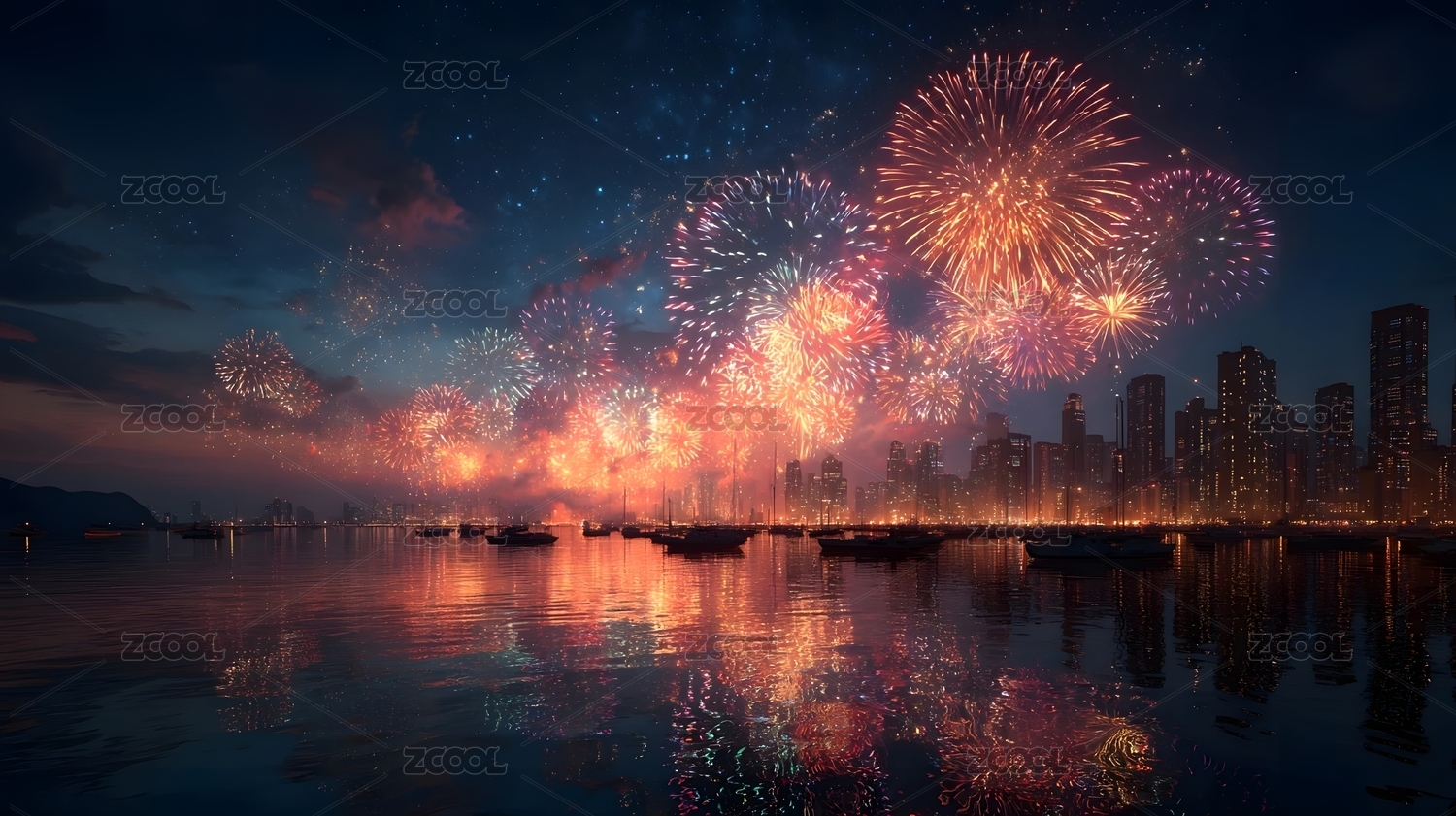 城市烟花夜景