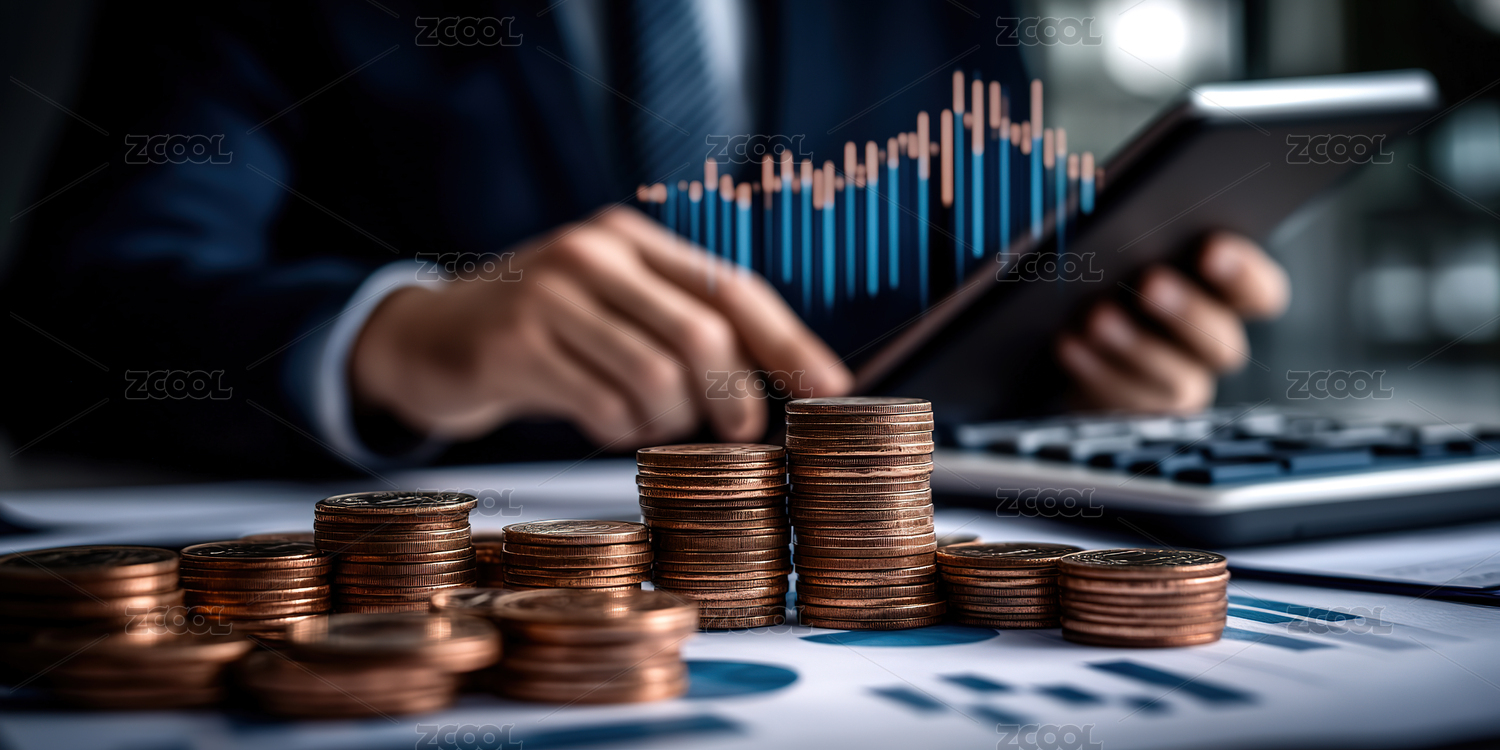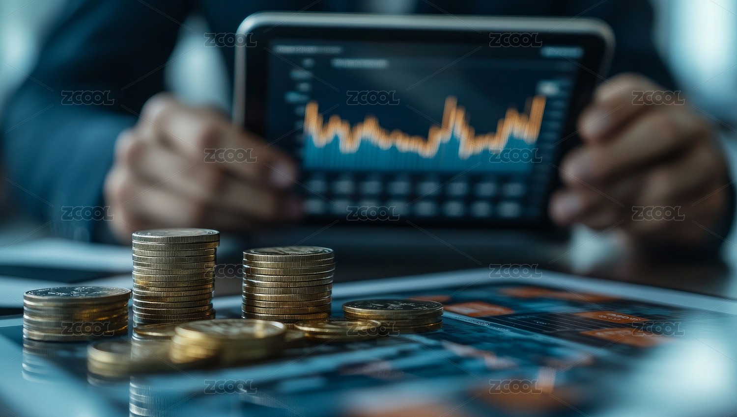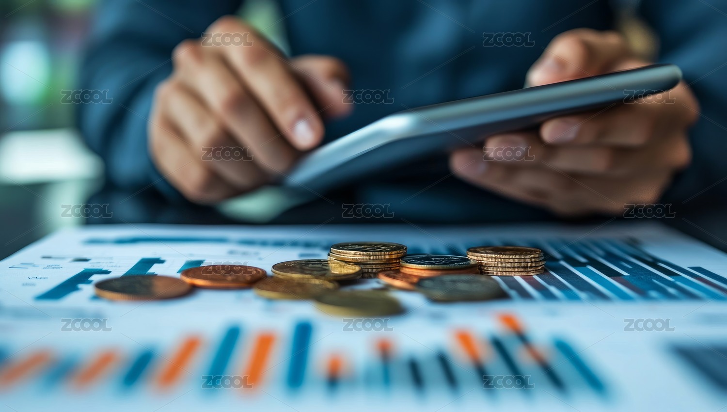 平板,硬币,图表,金融,分析,办公,数据,投资,货币,商务人士