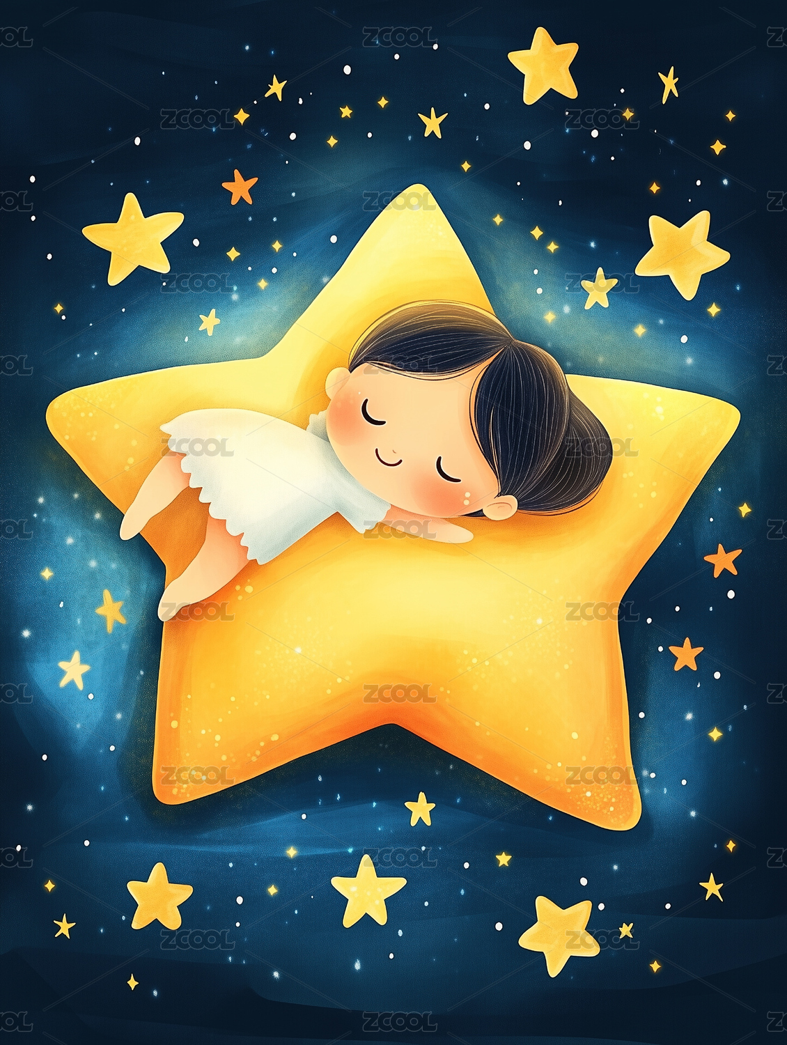 手绘蜡笔儿童睡眠插画