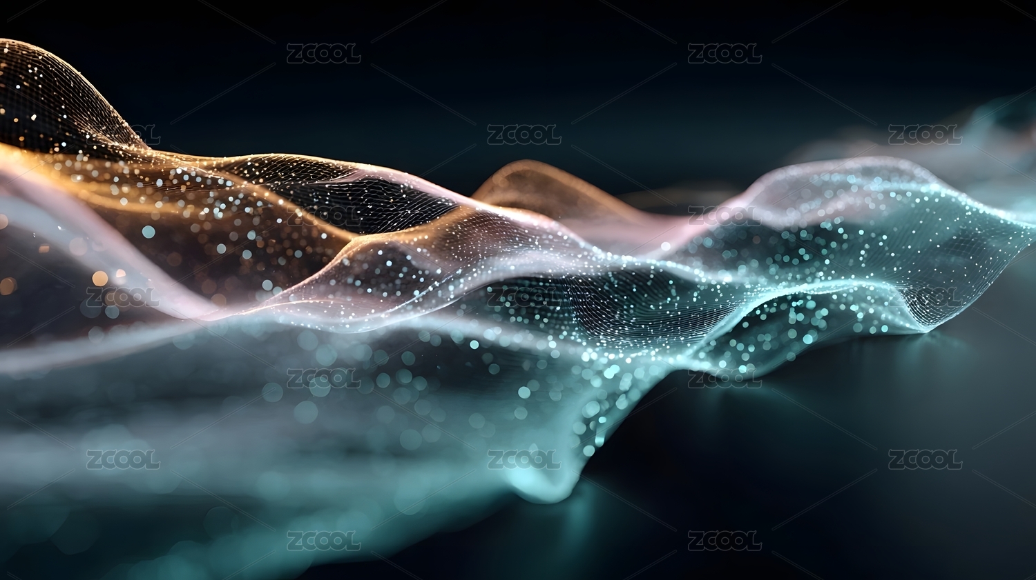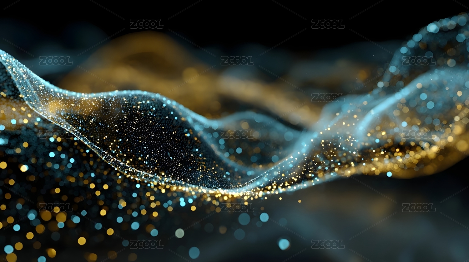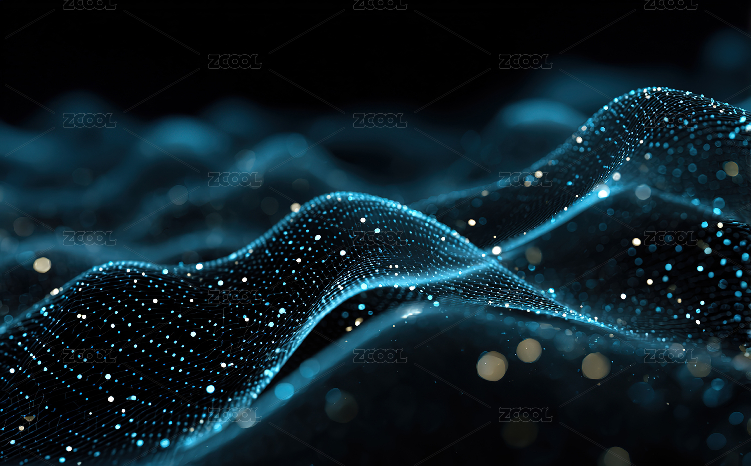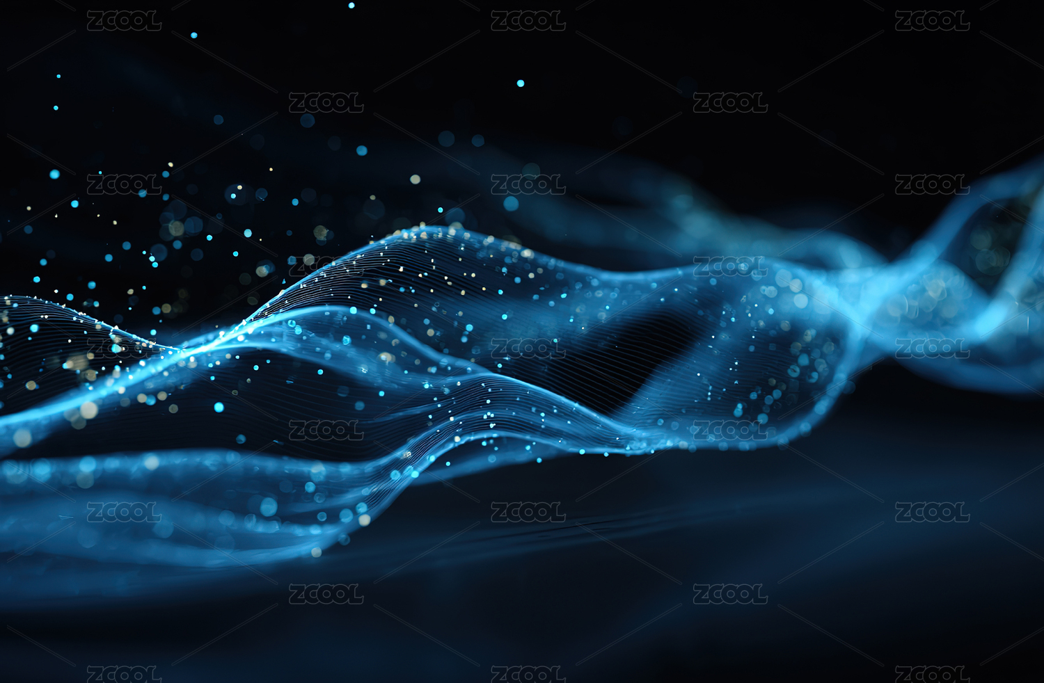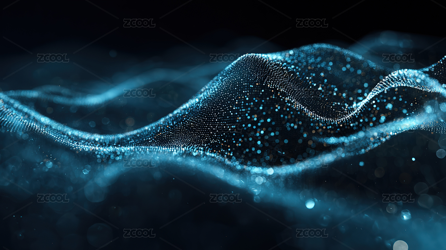 蓝色粒子波浪在黑暗中流动的科技抽象画面
