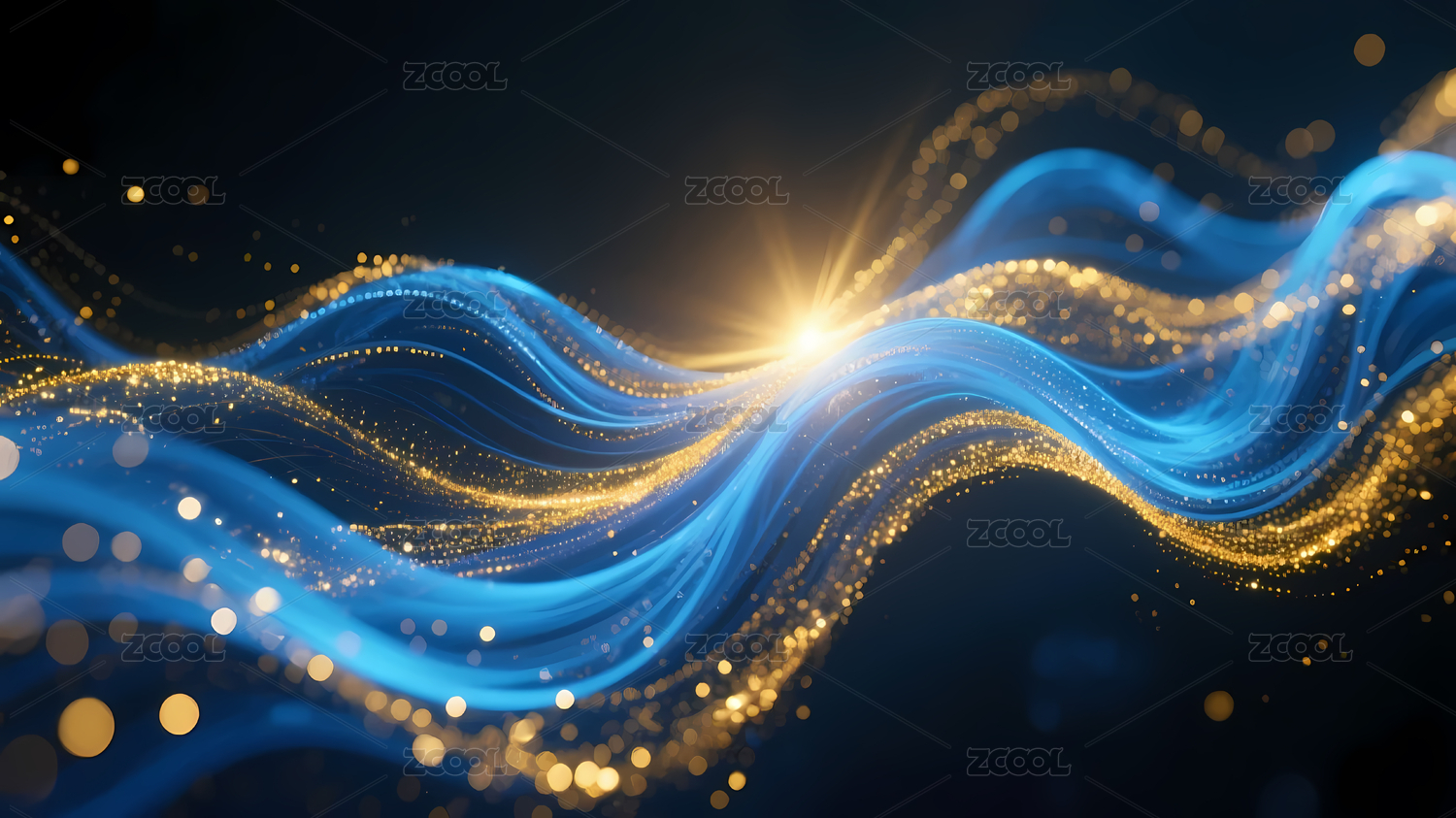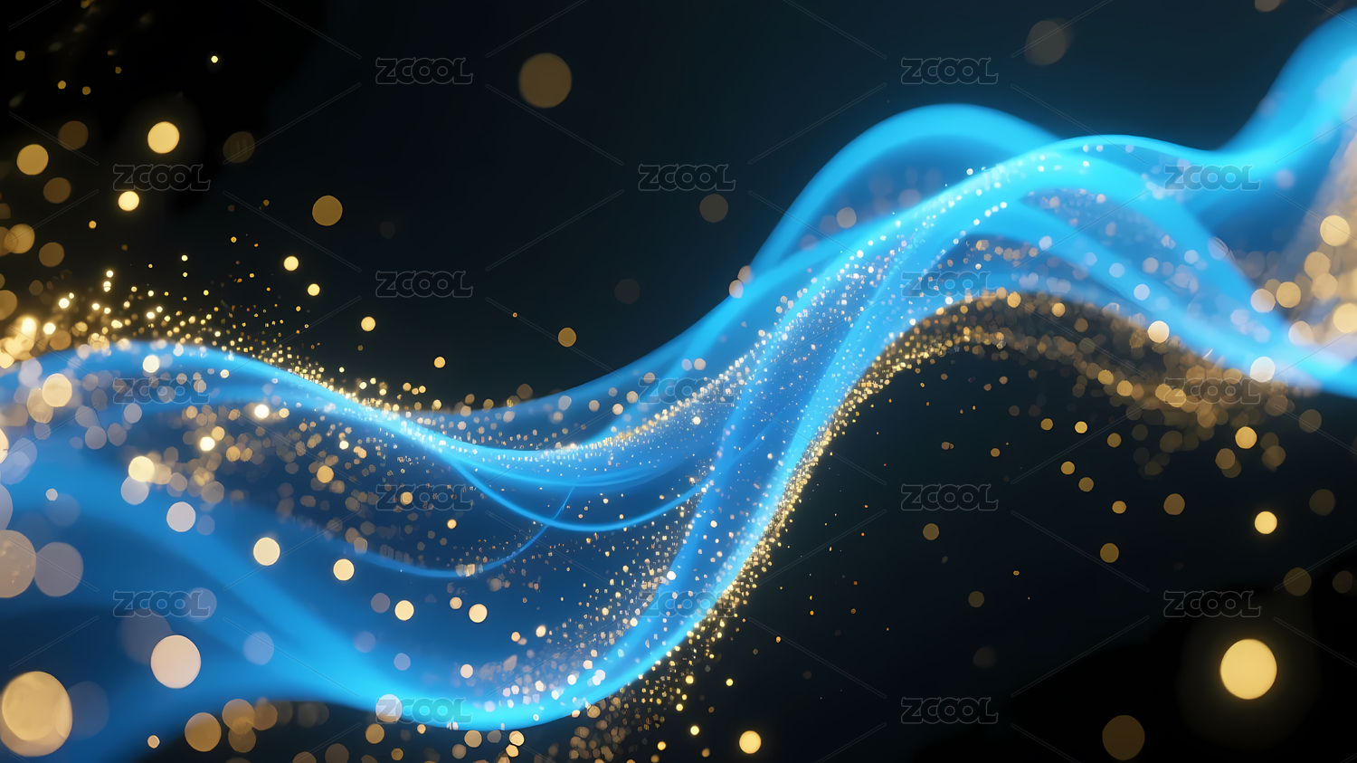 背景,波浪,蓝色,金色,交织,流动,光斑,闪烁,黑色,光带
