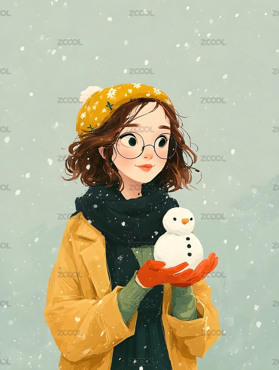 艺术,绿色,绘画,雪花,风景,户外,人物,寒冷,冬天,帽子