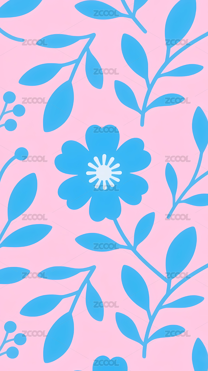 蓝色花朵与粉色背景