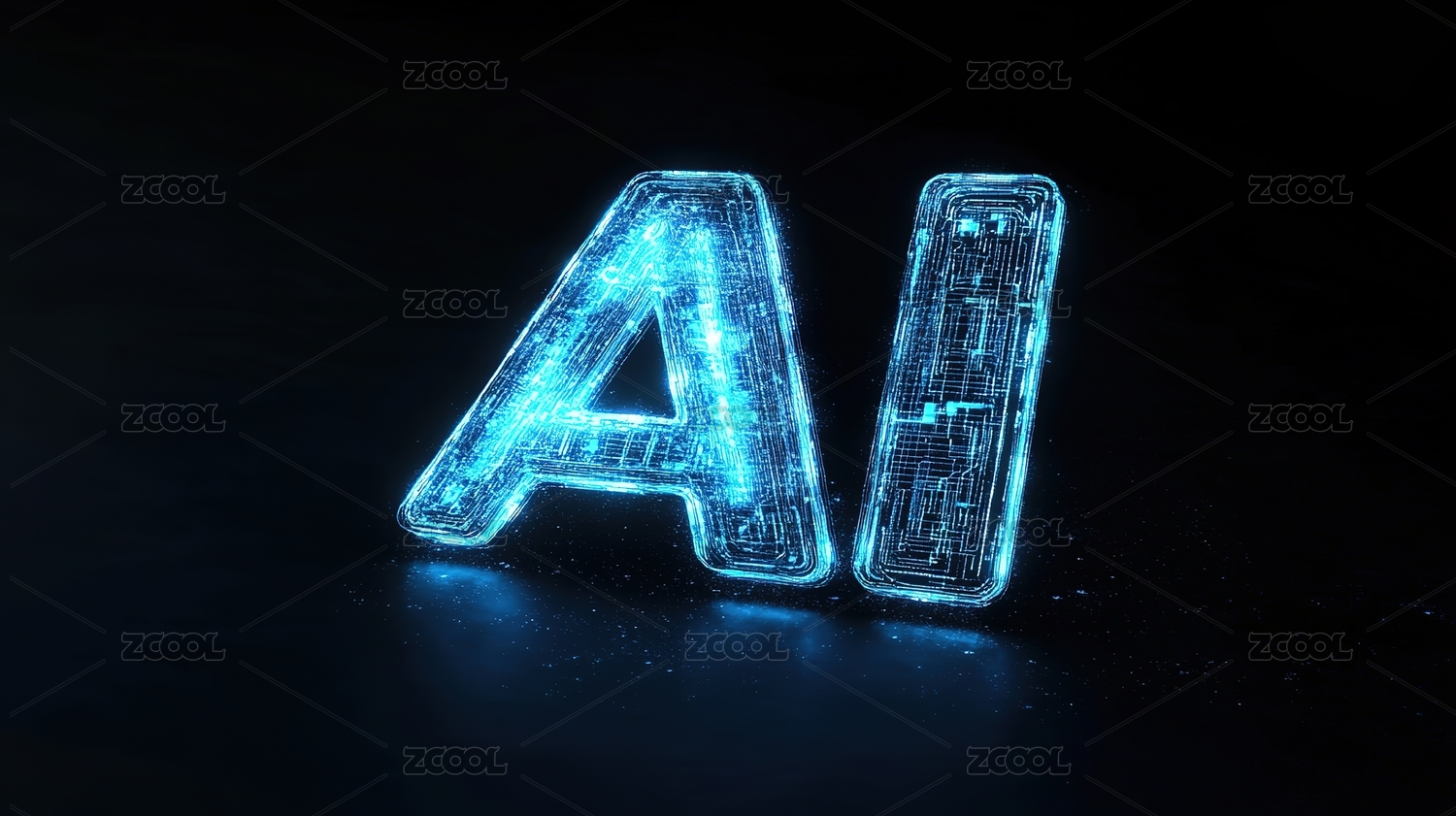 微芯片微电路拼接的立体字AI