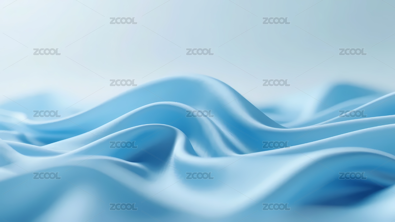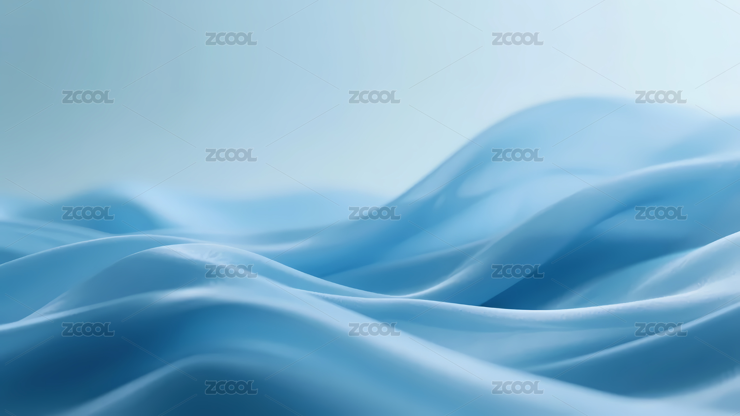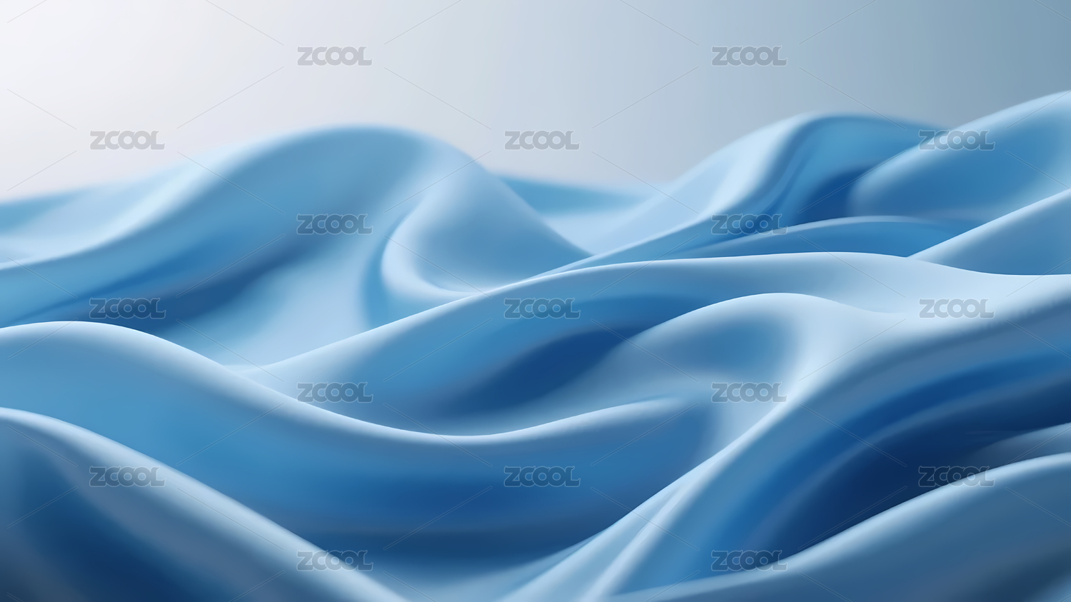 蓝色波浪物体展现丝绸质感与宁静氛围