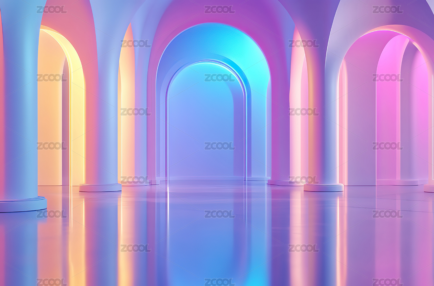 抽象建筑渲染3d插图,现代几何形状墙壁P