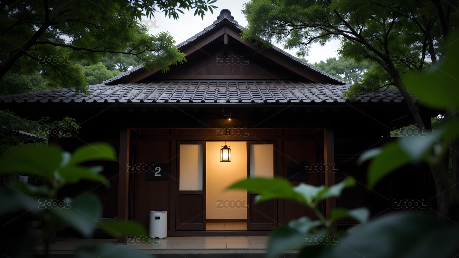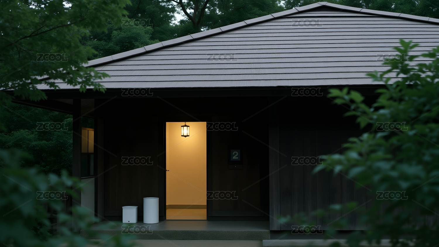 光影,静谧,灯光,树木,自然,日式建筑,庭院,禅意,木屋,日式庭院