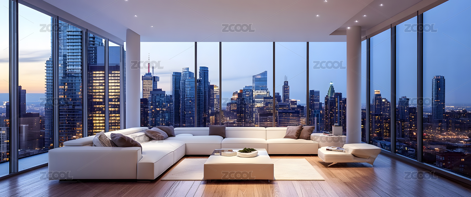 现代公寓客厅城市景观