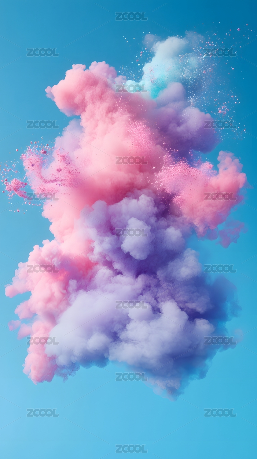 抽象彩色粉尘在纯色背景下爆炸粉尘喷溅背景