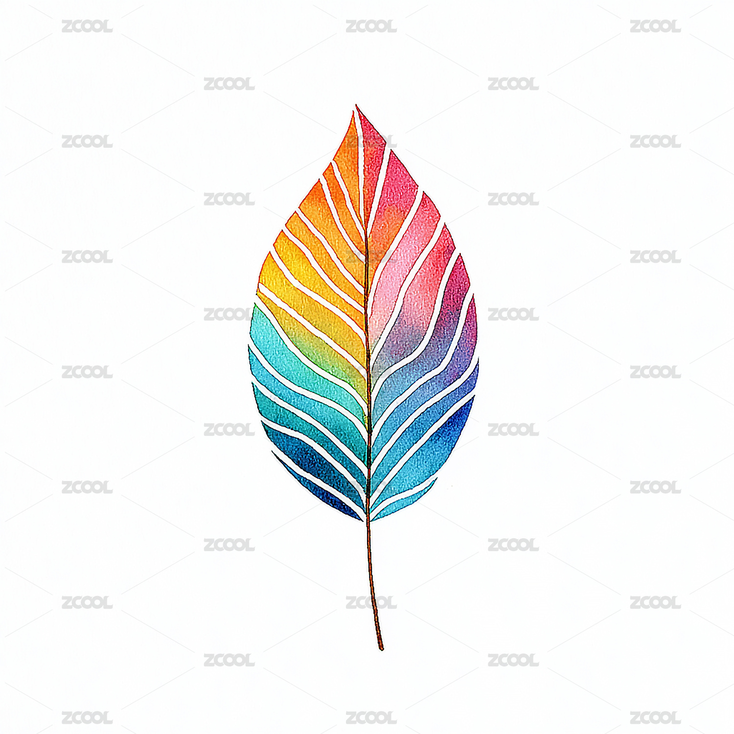 水彩彩色树叶
