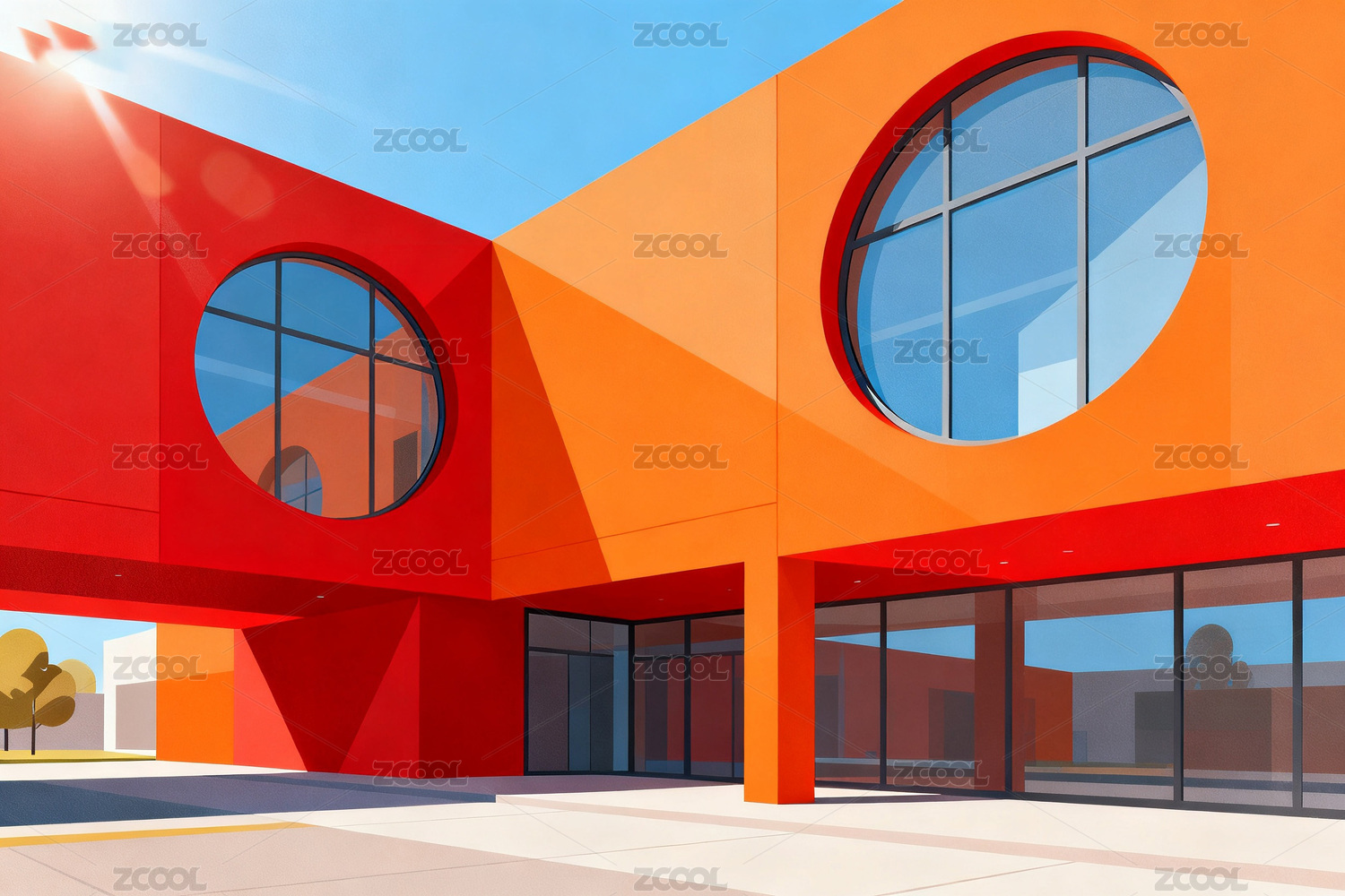 红橙色建筑外观设计
