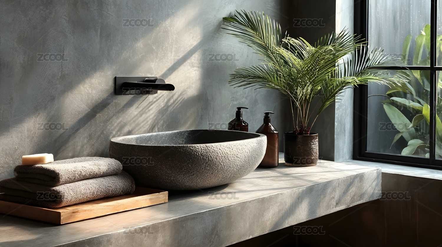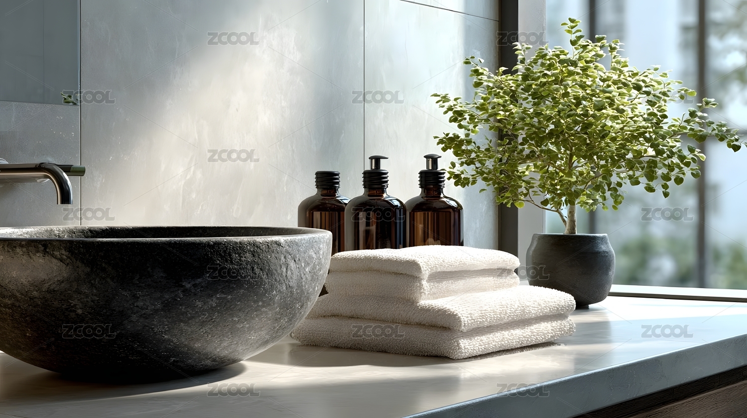 植物,阳光,室内,绿植,洗手台,毛巾,洗面盆,水龙头,浴室,洗漱台