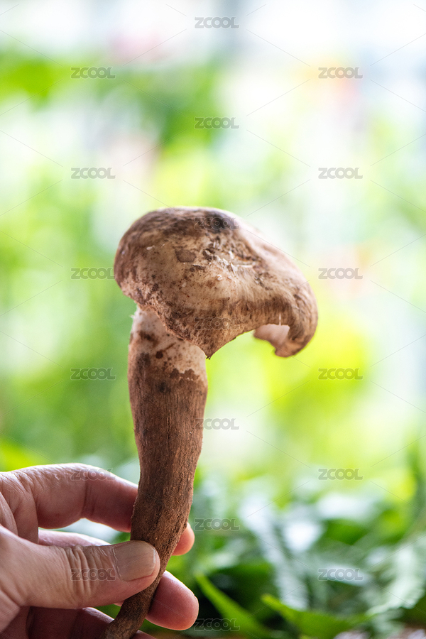 手上拿着野生茶树菇