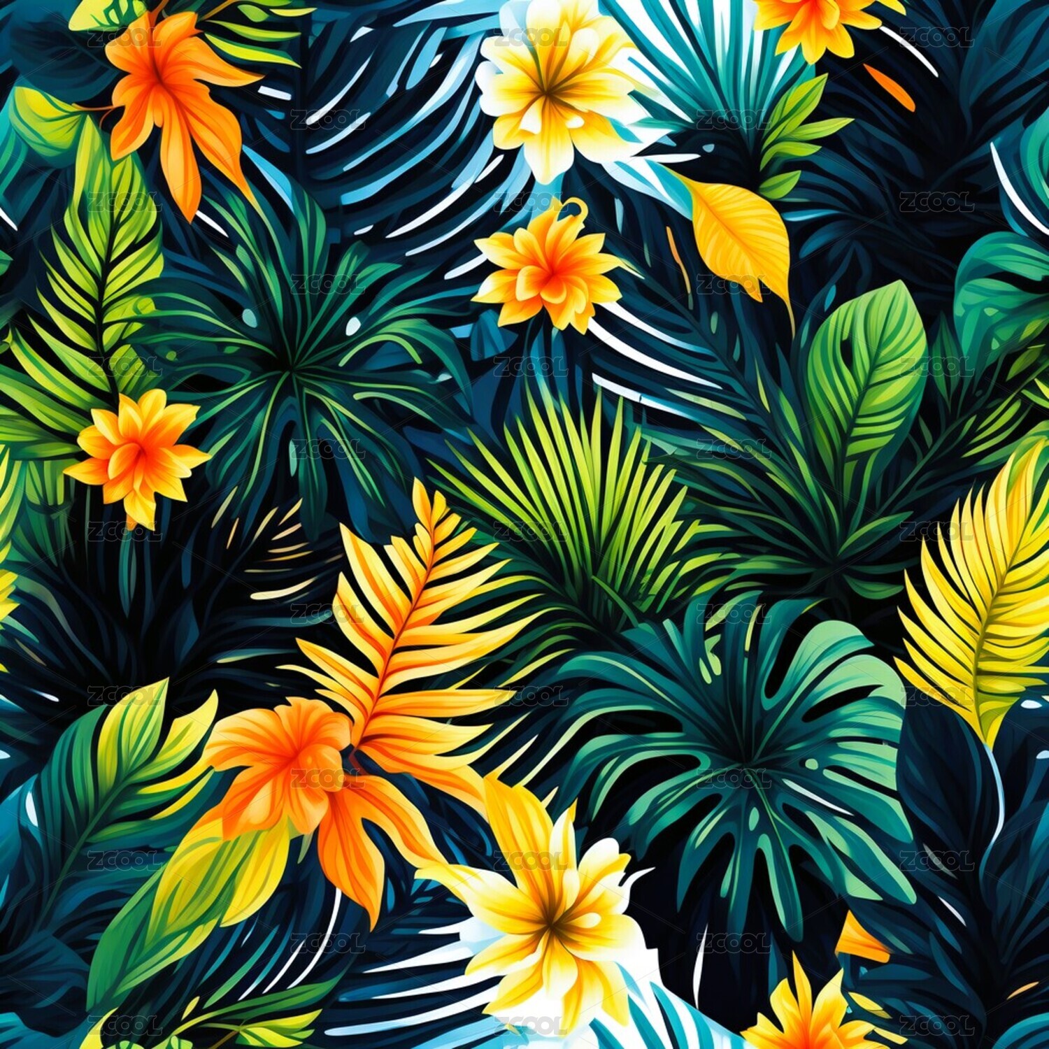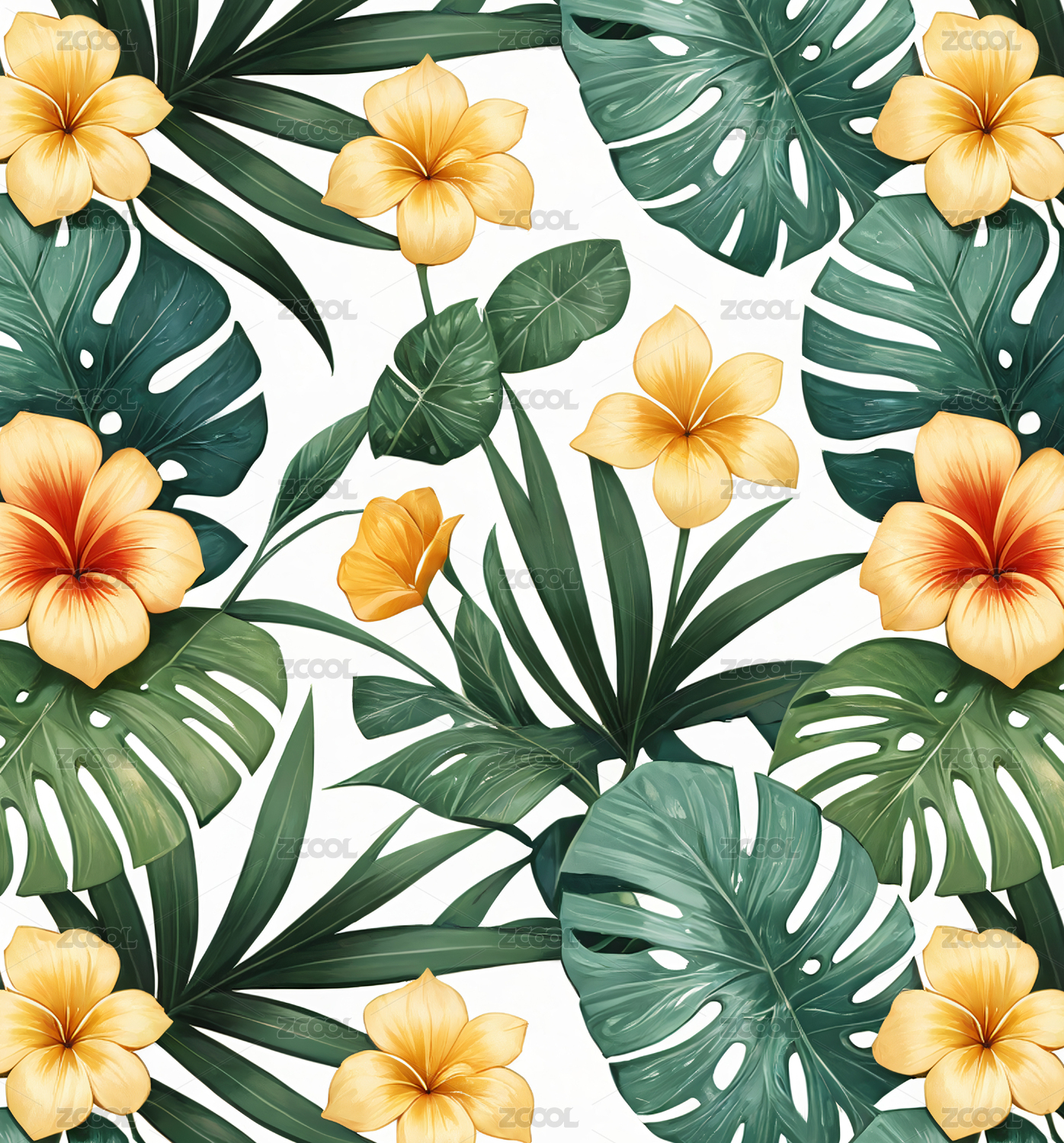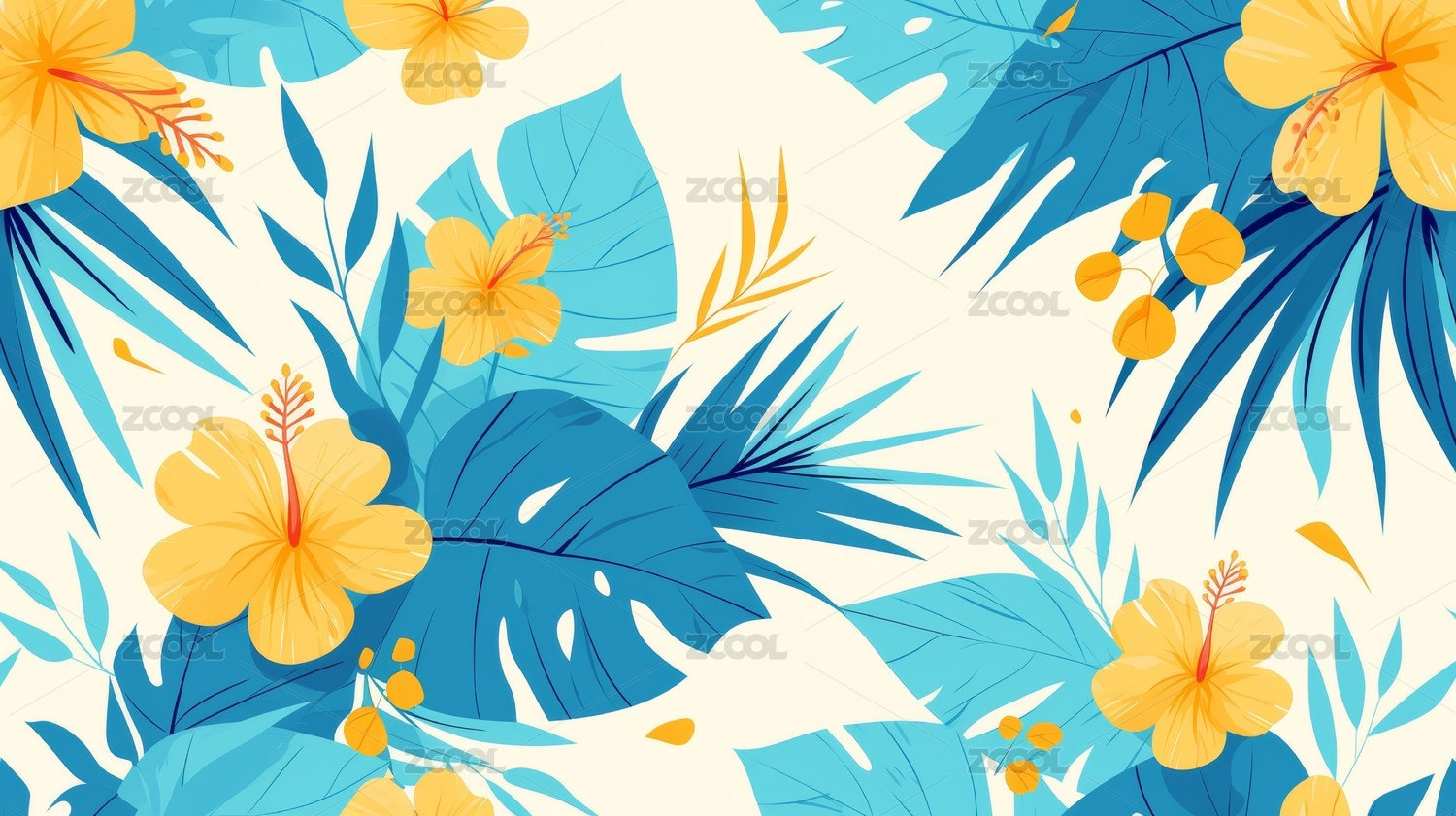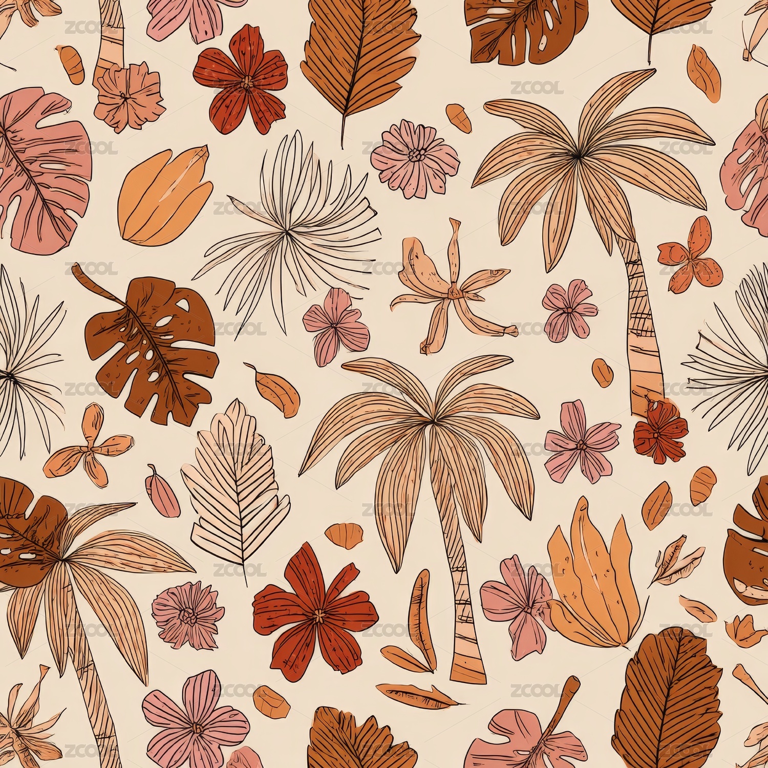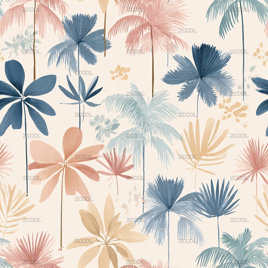 热带植物,花卉,插画,图案,背景,棕榈树,叶子,柔和色调,清新,自然