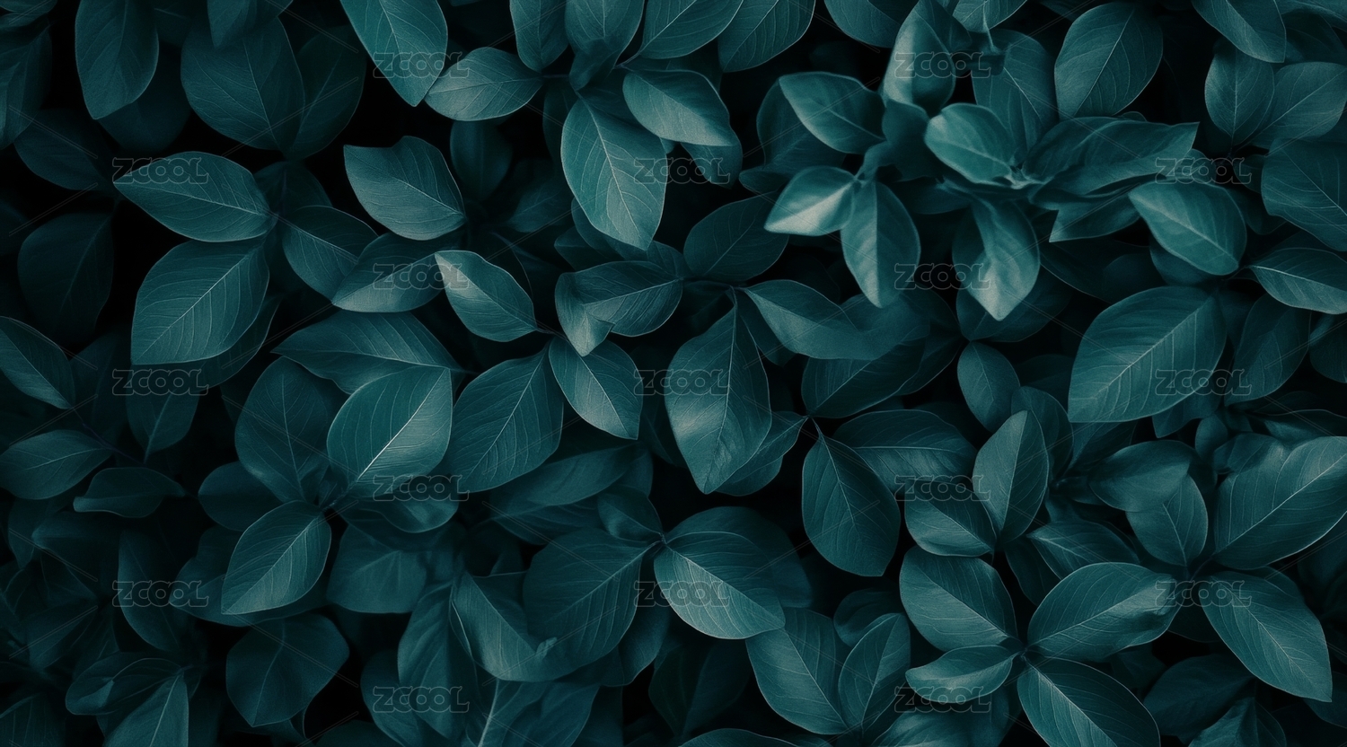 黑绿色叶片与深色背景