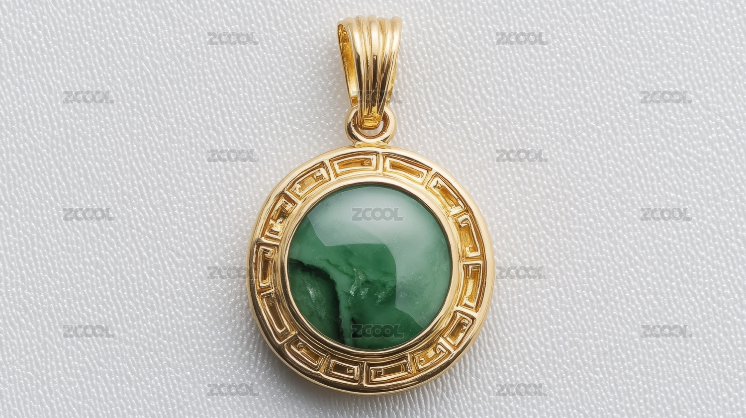金色边框的绿色玉雕吊坠