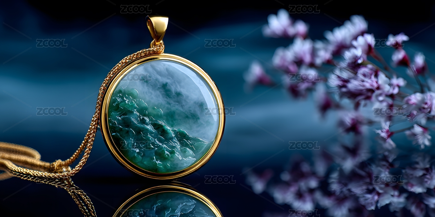 金色吊坠翡翠项链写实风