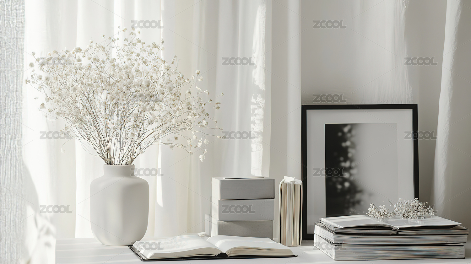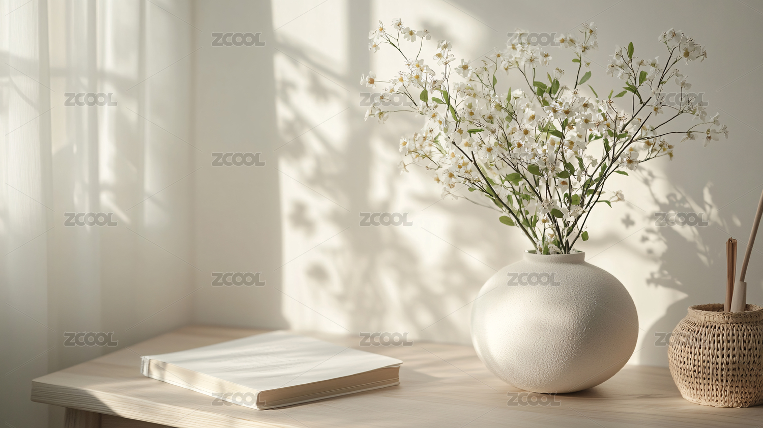 自然,阳光,装饰,桌面,室内,植物,简洁,白色,木质,光影