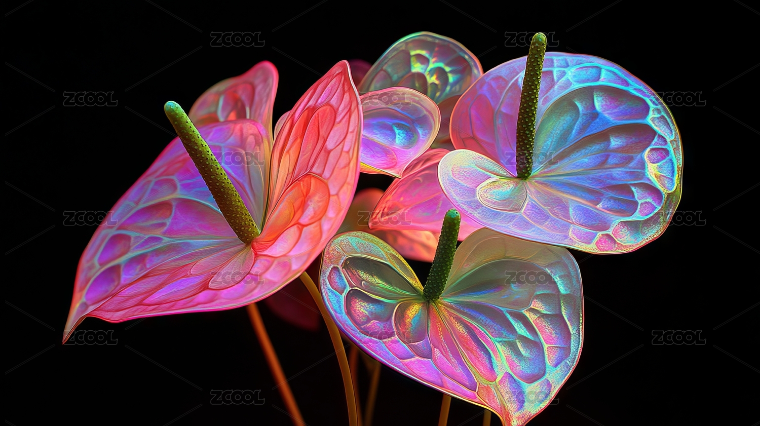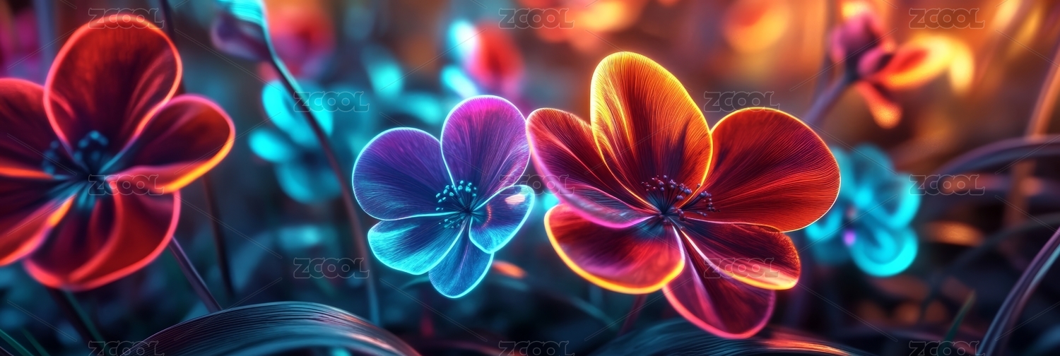 黑底X光透视彩色线条莲花荷花3D插画背景