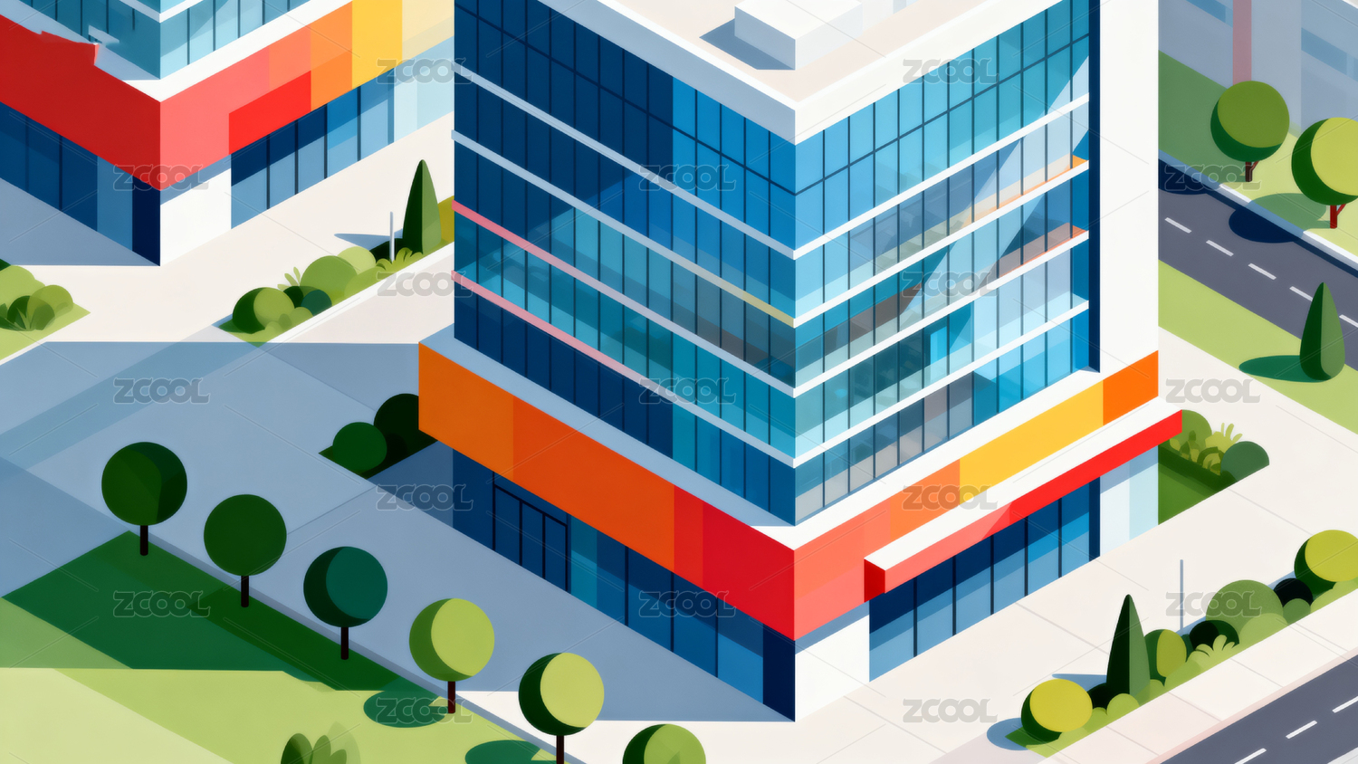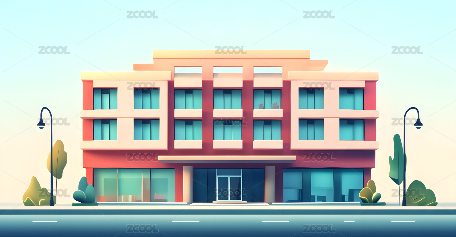 建筑,四层,多彩,插画,树木,城市,背景,主题,属性,模板