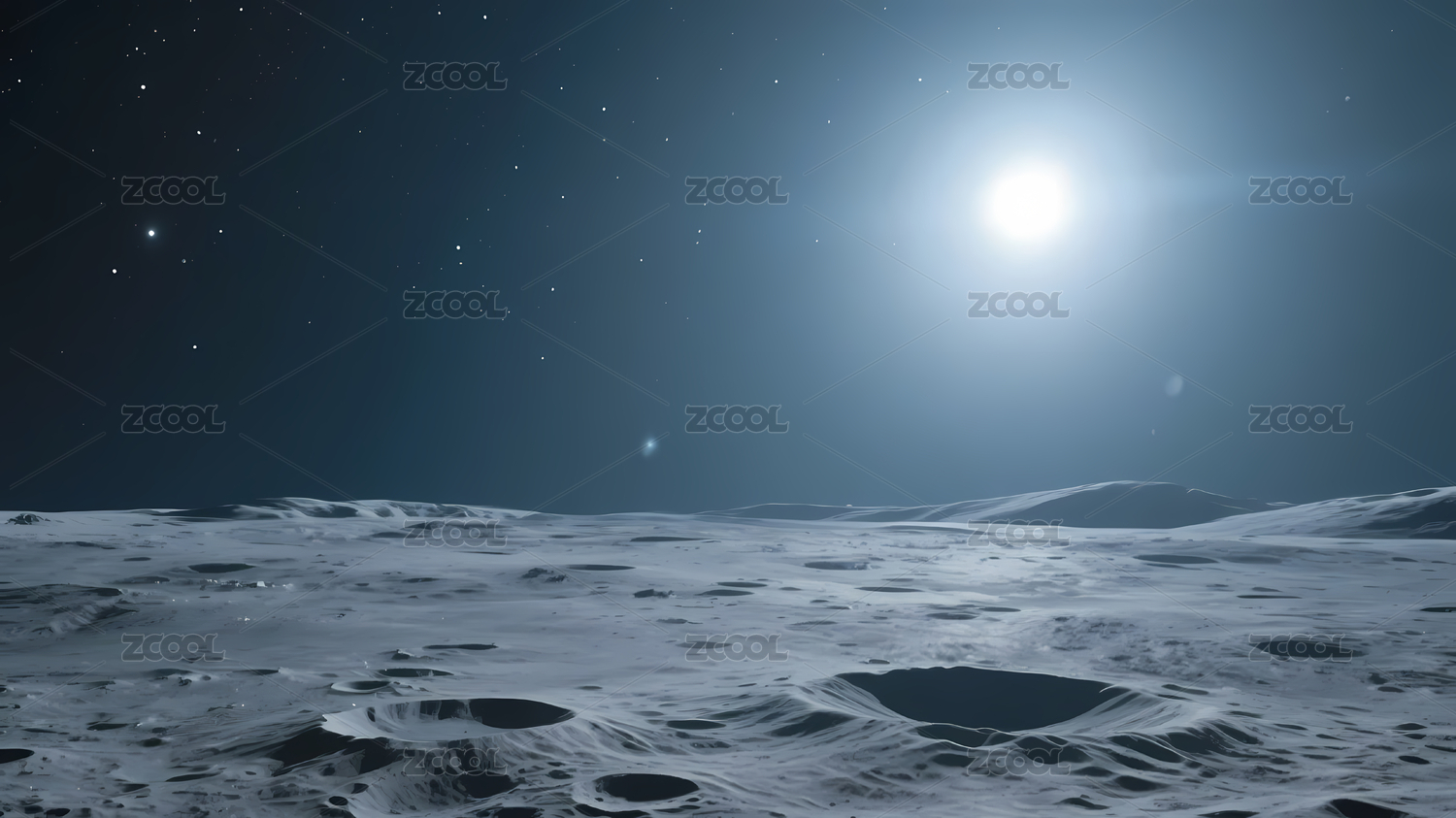 月球山脉坑洞星空太阳