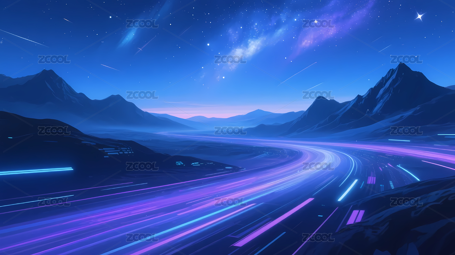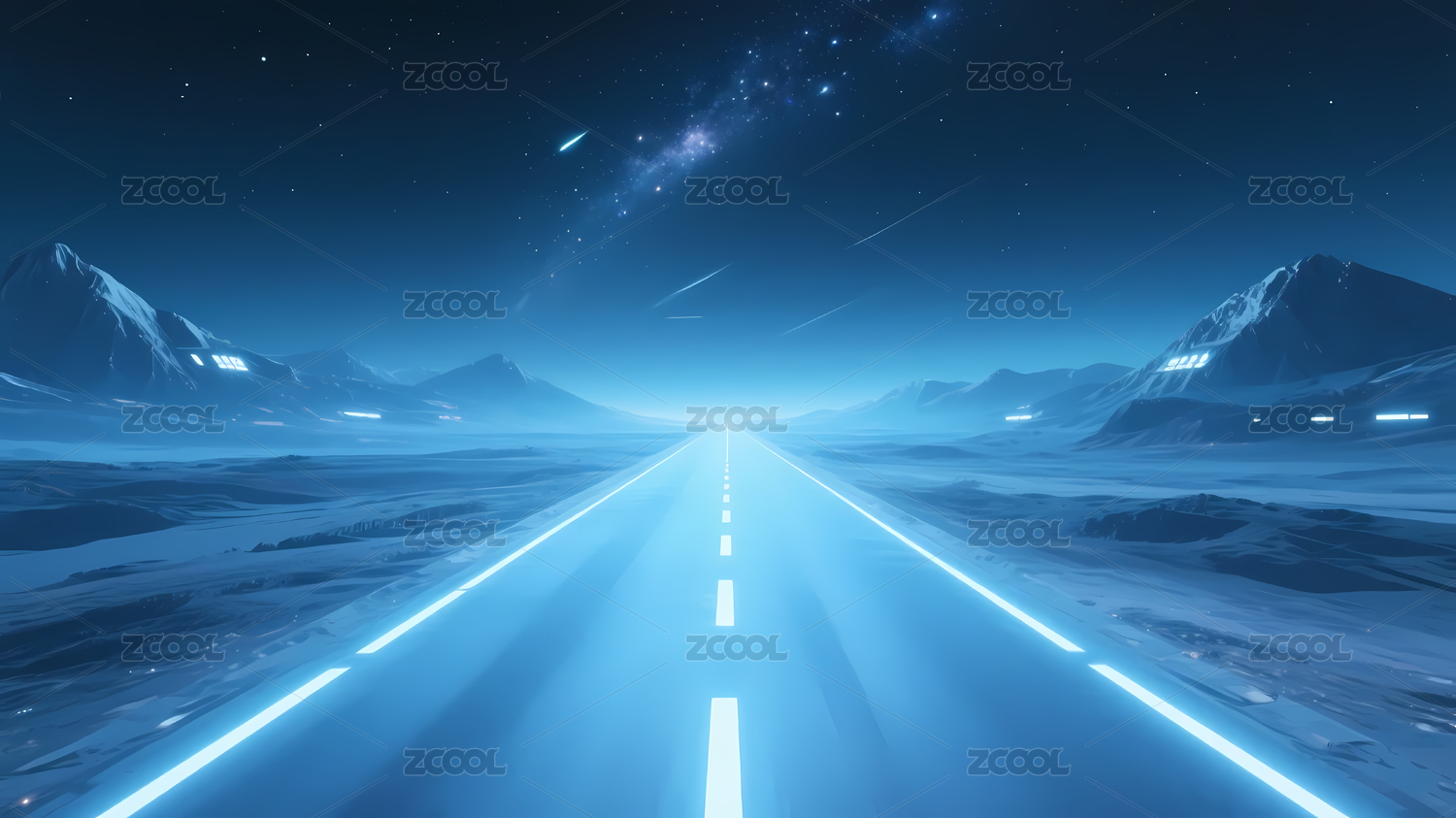 高速公路,蓝色,背景,未来,发光,星空,山脉,延伸,银河,飞行器