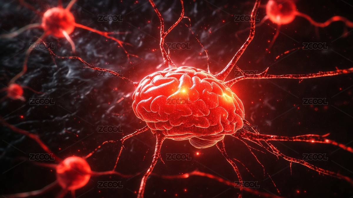 背景,红色,视觉,动态,发光,大脑,神经元,连接,细胞,网络