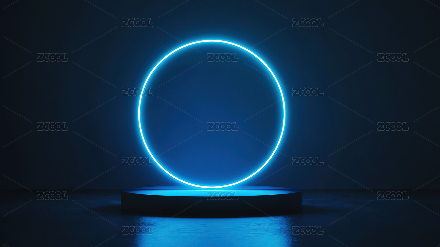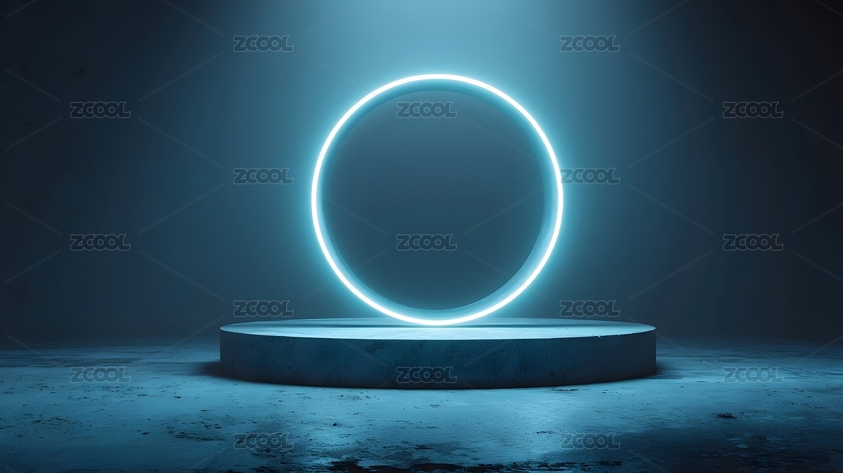 蓝色光环悬浮于圆形平台之上