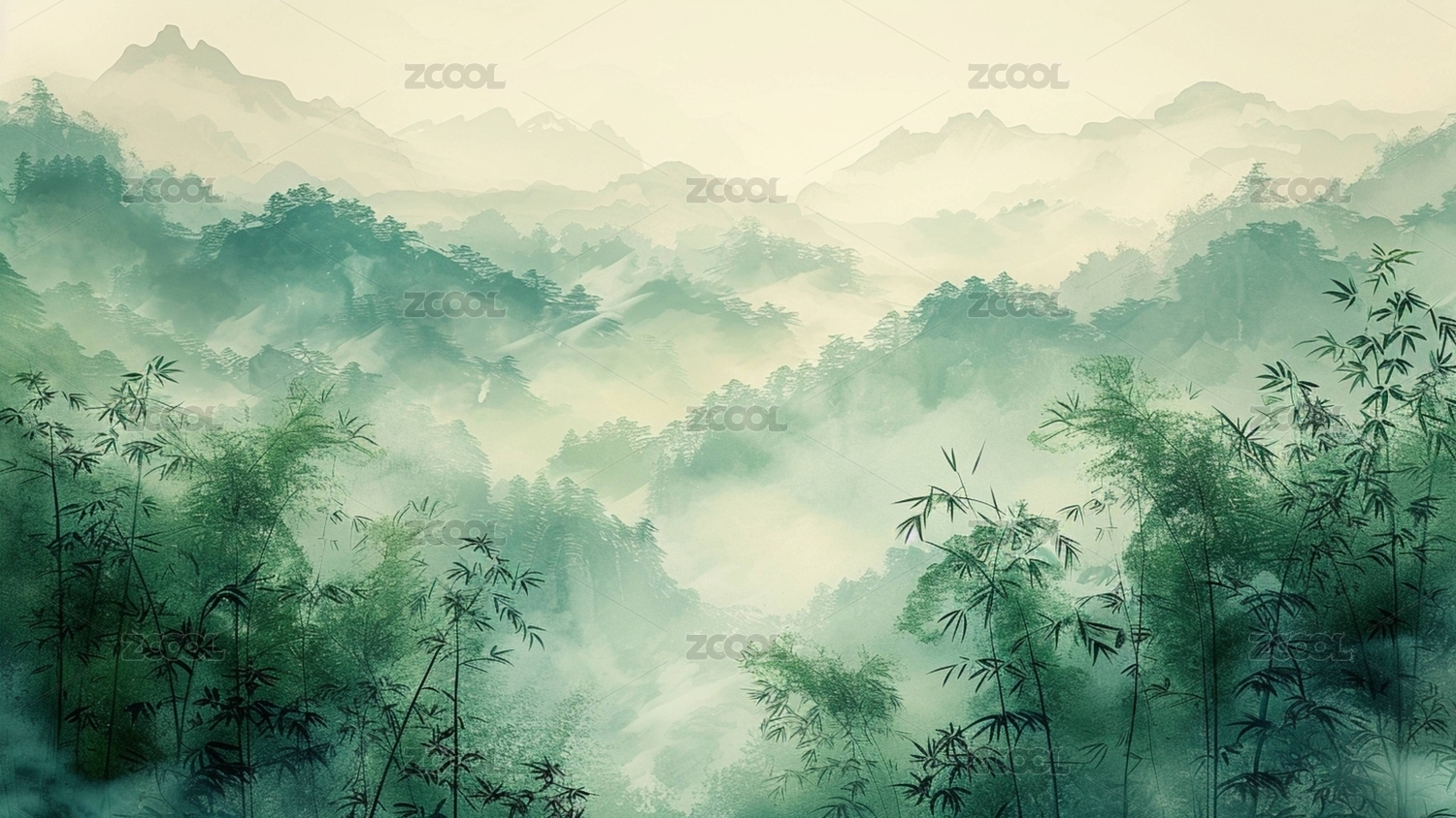 竹林远山风景画