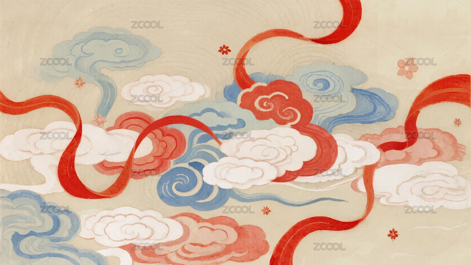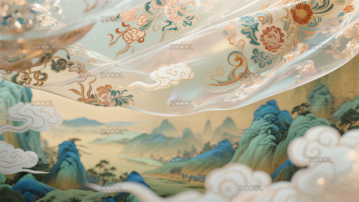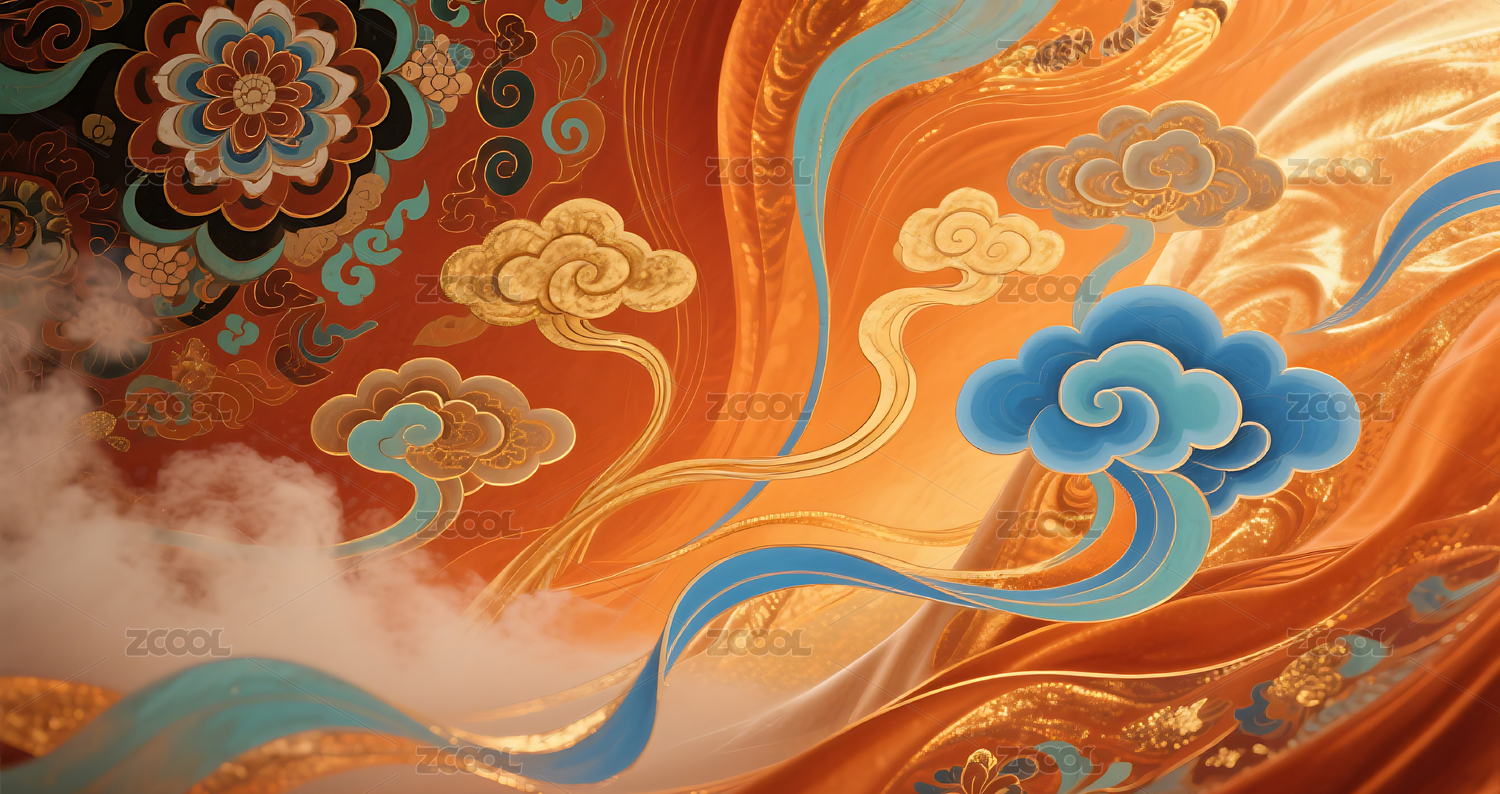 敦煌,丝绸,飘动,插画,背景,壁纸,艺术,传统,文化,祥云
