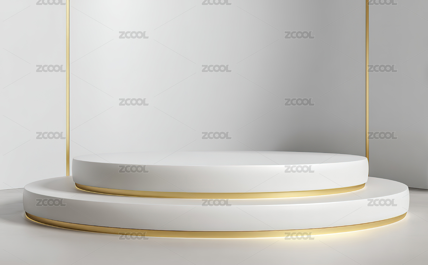 简约白色圆台与金色装饰线条
