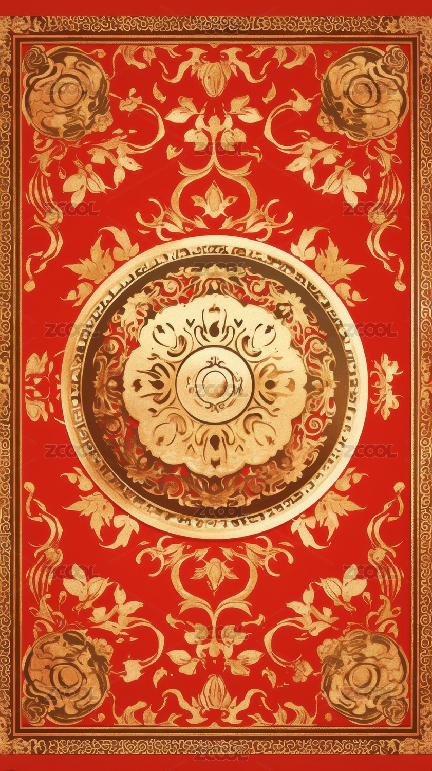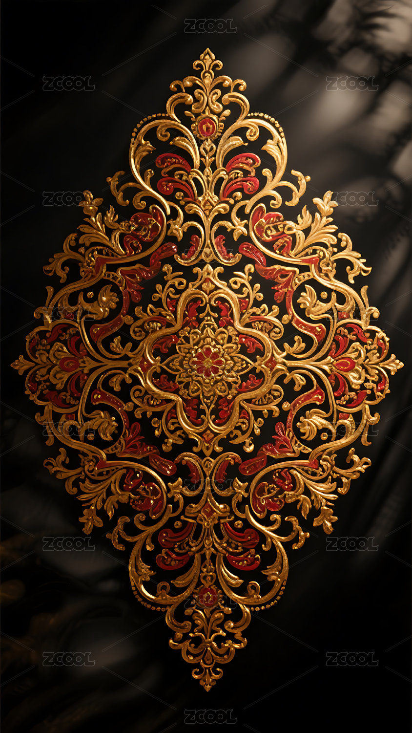 金色花纹,装饰图案,复古,插画,模板,华丽,对称,珠宝,花纹元素,红色